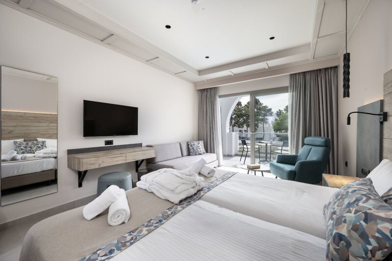 Die Zimmer im Palladium Hotel sind komfortabel und gut ausgestattet. Sie verfügen über eine Klimaanlage, Balkon oder Terrasse, ein eigenes Bad und einen Flachbildfernseher. Sie können aus verschiedenen Zimmertypen auswählen, einschließlich Deluxe- und Superior-Doppelzimmer sowie Familienzimmer. Alle Zimmer haben Zugang zu WLAN.