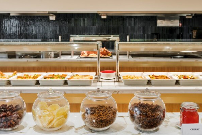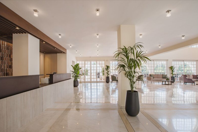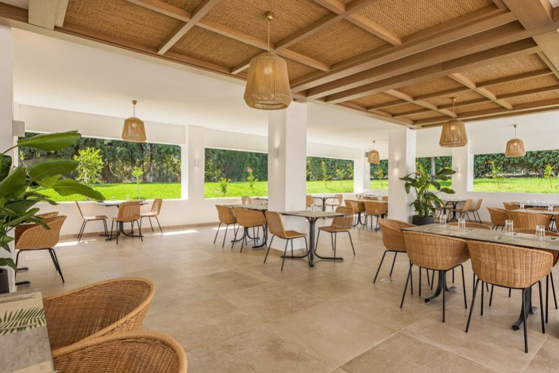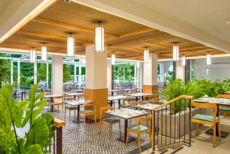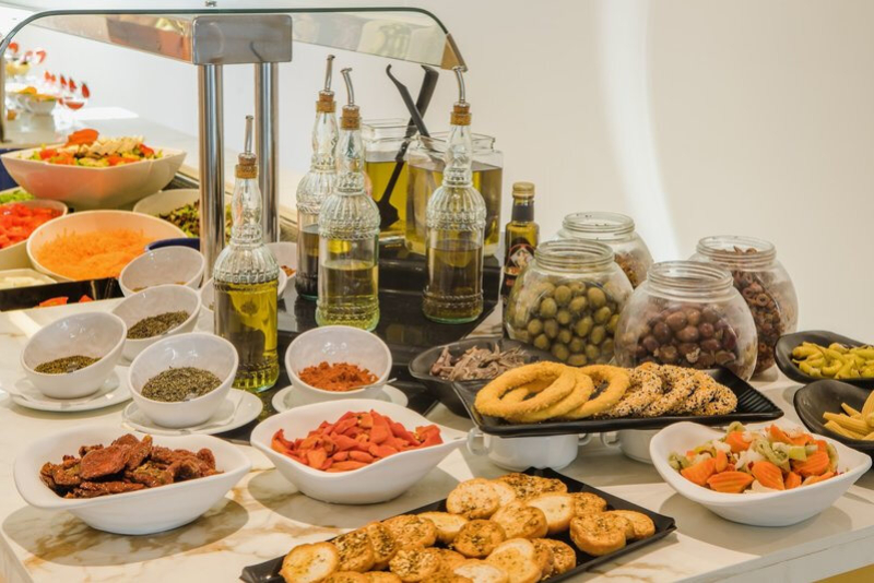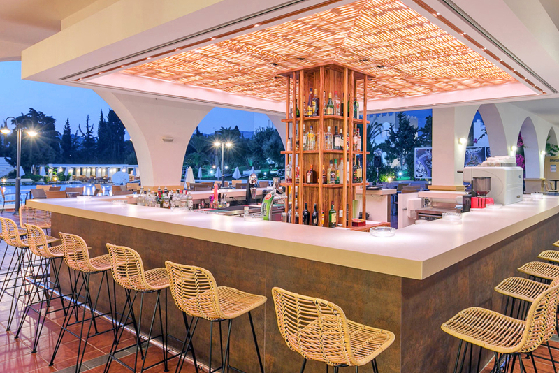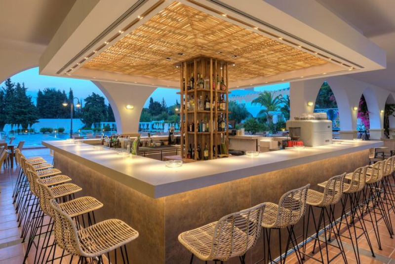 Das Hotel bietet Halbpension an, die ein Frühstück und Abendessen in Buffetform beinhaltet. Mit zwei Restaurants und drei Bars sind für kulinarische Vielfalt und Erfrischungen gut gesorgt. Eine Besonderheit ist die Taverna, ein À-la-carte-Restaurant, das gegen Gebühr verfügbar ist. Für besondere Ernährungsformen, wie glutenfreie Kost, kann auf Anfrage direkt im Hotel eingegangen werden.Ausstattung