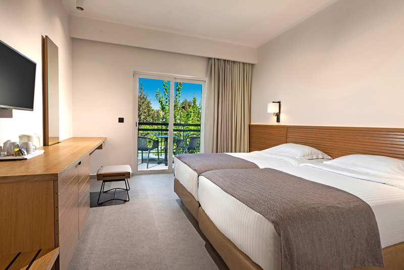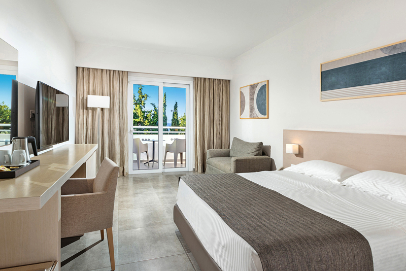 Die Zimmer sind komfortabel und in zeitgenössischem Design eingerichtet, wobei jedes eine Minibar, Satelliten-TV, Kaffee-/Teezubereiter und ein privates Badezimmer bietet. Darüber hinaus sind Balkon oder Terrasse Teil jeden Zimmers. Einige Zimmer verfügen sogar über einen Whirlpool. Für Familien gibt es spezielle Zimmer mit mehr Schlafzimmern und extra Ausstattung wie zusätzliche TVs.