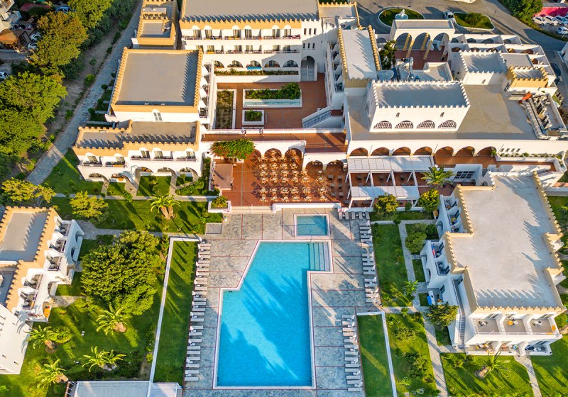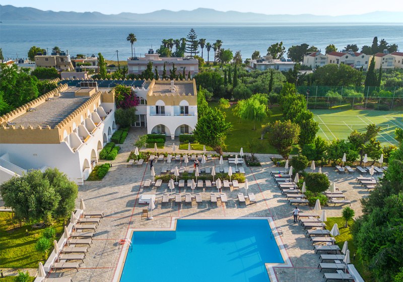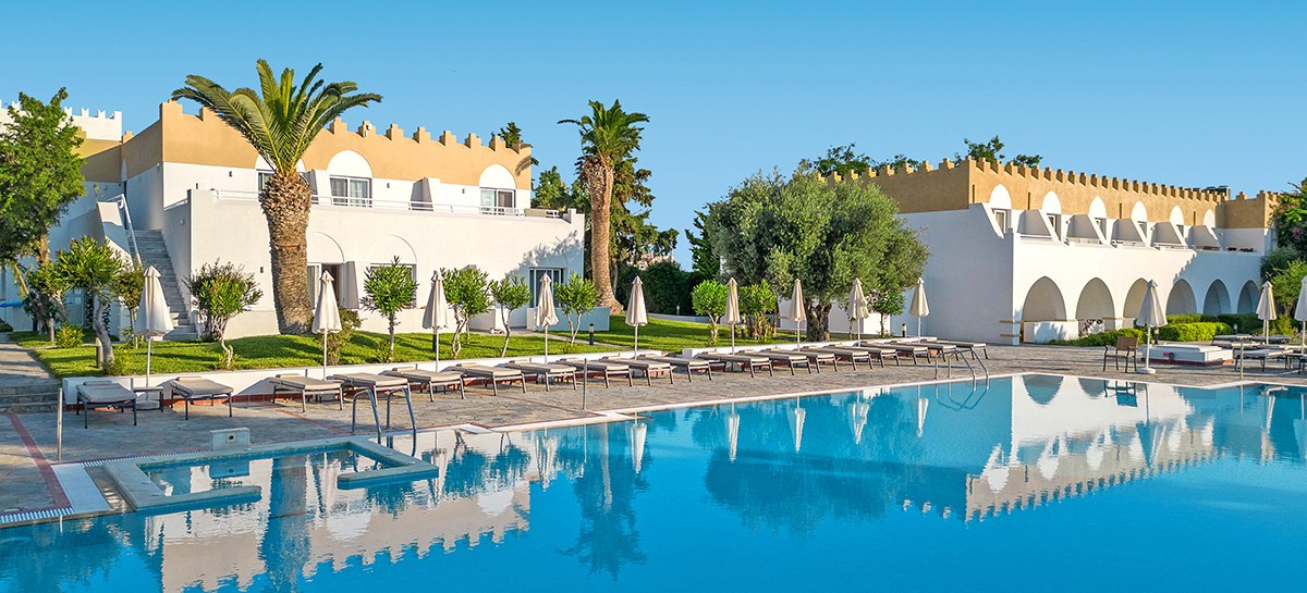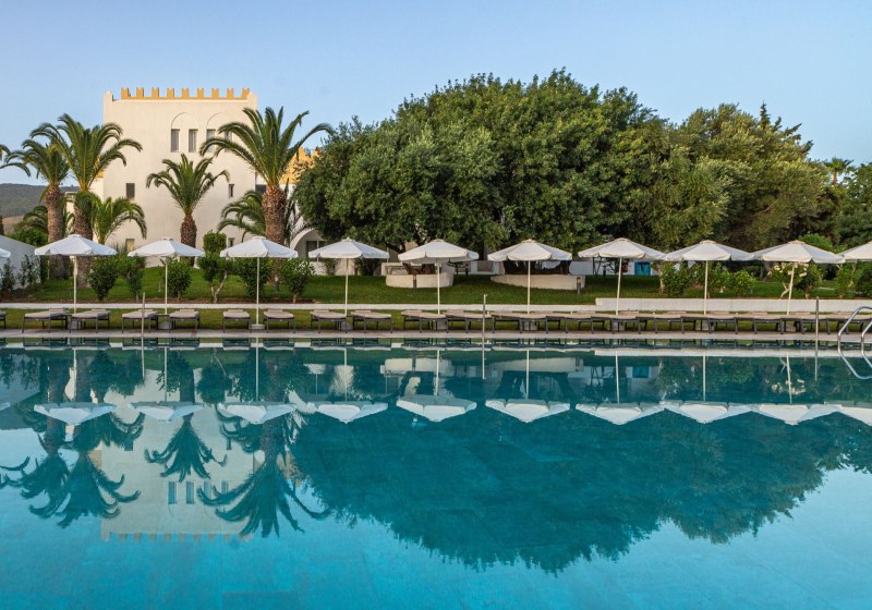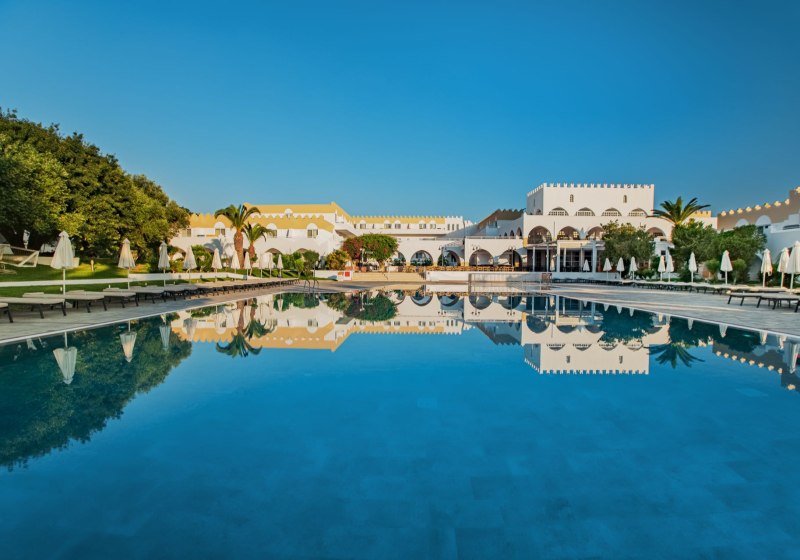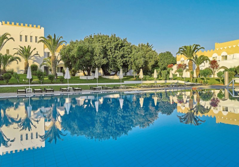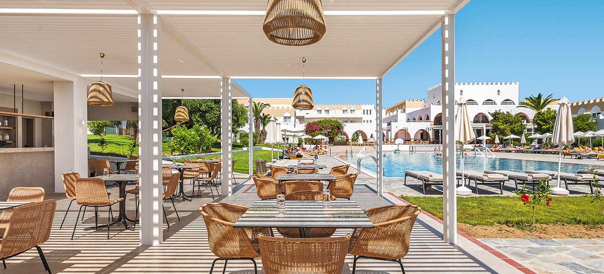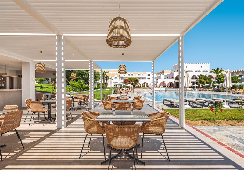 Platanista verbindet ruhige Strandnähe mit komfortabler Anbindung an Kos-Stadt. Die Ausstattung deckt Alltag und Erholung gleichermaßen: Außenpool, Kinderbereiche, Spa mit Sauna und Dampfbad, sowie ein zuverlässiges kulinarisches Angebot von Taverne bis Poolbar.