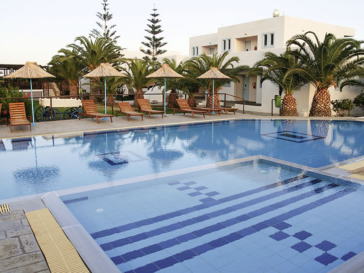 Im Kalimera Mare wohnt Ihr auf der Südküste von Kos, wenige Gehminuten vom Strand entfernt. Die Anlage wirkt aufgeräumt und freundlich, mit Gartenflächen, Sonnenterrasse und einem Außenpool mit integriertem Kinderbecken. WLAN nutzt Ihr in der gesamten Anlage inklusive, die Wege sind kurz, die Atmosphäre entspannt und unaufgeregt.