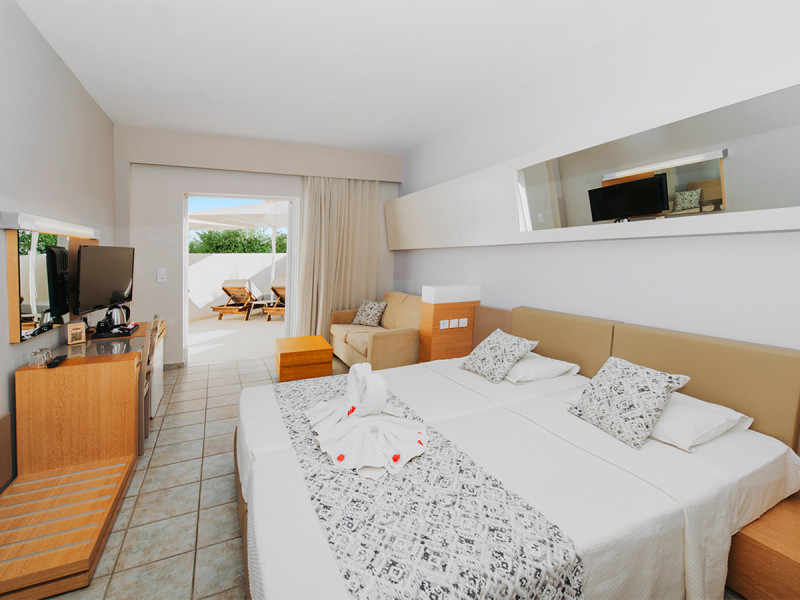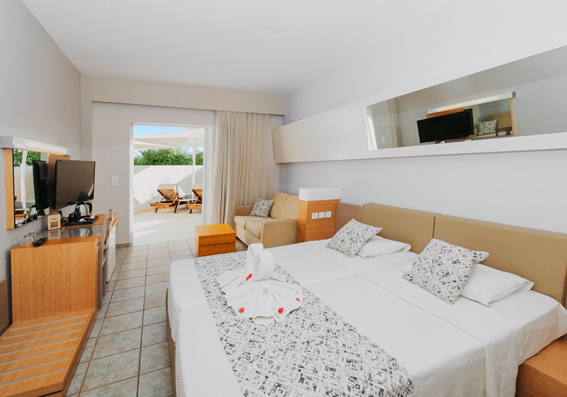 • Klimaanlage • Haartrockner • Minikühlschrank • Safe (kostenfrei) • Fernseher • rollstuhlgerechte Zimmer (auf Anfrage) • WiFi (kostenfrei) • Balkon oder Terrasse • Gartenblick • Balkon (je nach Zimmerkategorie) • Kühlschrank • Minibar • Meerblick (je nach Zimmerkategorie) • Schlafsofa • Kaffee-/Teezubereiter • Terrasse