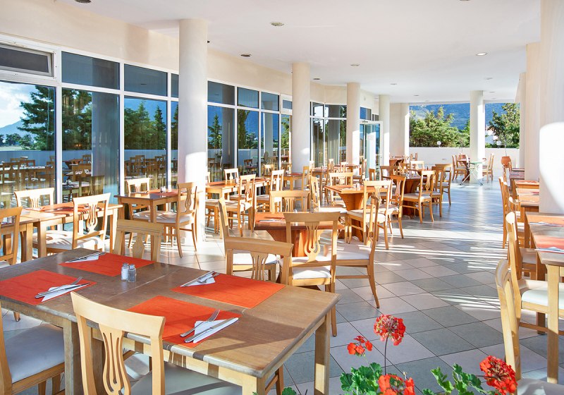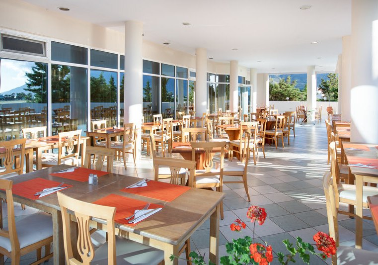 Ihr wählt zwischen All Inclusive und Halbpension. Das Buffetrestaurant mit Außenterrasse serviert Frühstück, Mittag‑ und Abendessen, ergänzt von Live‑Kochen. Die Taverne setzt einen eigenen Akzent, Snacks und Getränke erhaltet Ihr an Pool‑/Snackbar sowie in den Bars. Highlight: Live‑Kochen am Buffet mit Terrasse im Freien.