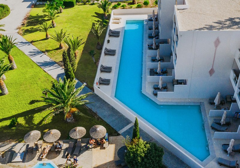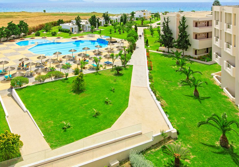 Die Lage spricht für sich: Ihr wohnt direkt am Strand, nur etwa 2 km vom Zentrum von Kardamena entfernt. Ein hoteleigener Shuttle bringt Euch bequem dorthin. Das Meer liegt laut Angaben in rund 30 m Entfernung, sodass Ihr Badepausen und kurze Wege angenehm kombiniert. Highlight: Direkte Strandlage mit schneller Anbindung ins Ortszentrum.