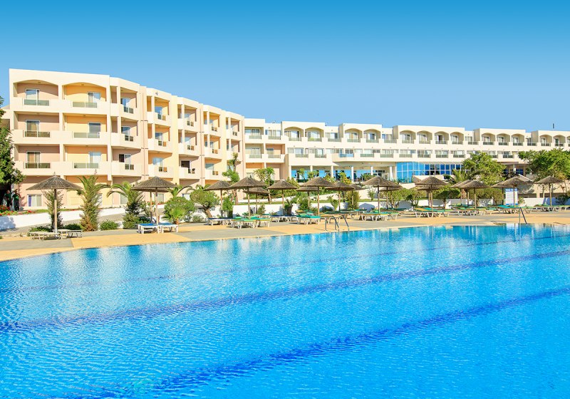 Im Sovereign Beach Hotel wohnt Ihr direkt am Strand von Kardamena. Die flachen Gebäude gruppieren sich um Gärten, Terrassen und einen Salzwasser‑Pool. Renovierungen 2023/2024 geben den Bereichen einen gepflegten Eindruck. Familien nutzt Ihr Miniclub und Kinderpool, Aktivreisende den Fitnessraum und die Plätze für Tennis oder Beachvolleyball. Highlight: Direkter Strandzugang mit kurzen Wegen zwischen Zimmern, Pool und Meer.