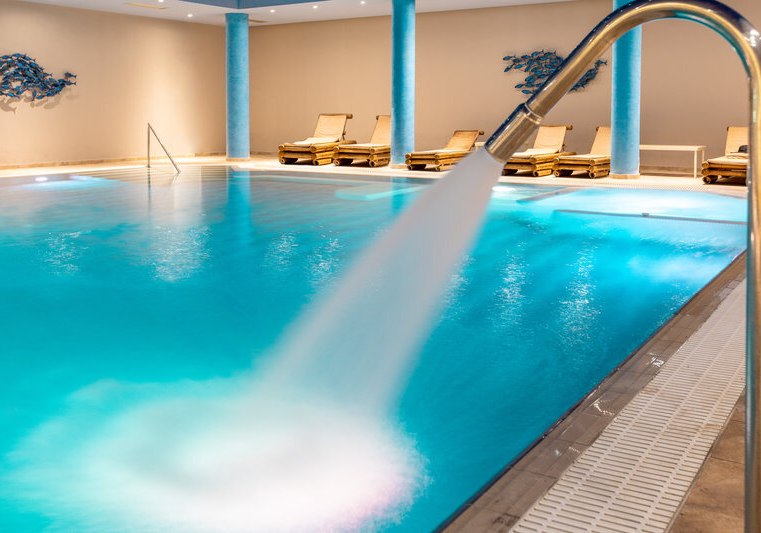 - Komplettes Spa: Hallenbad, Sauna, Dampfbad, Jacuzzi und Anwendungen vor Ort.