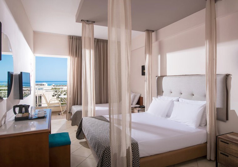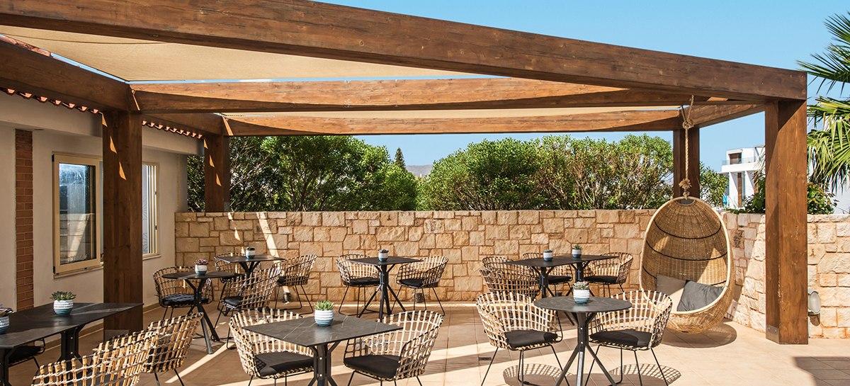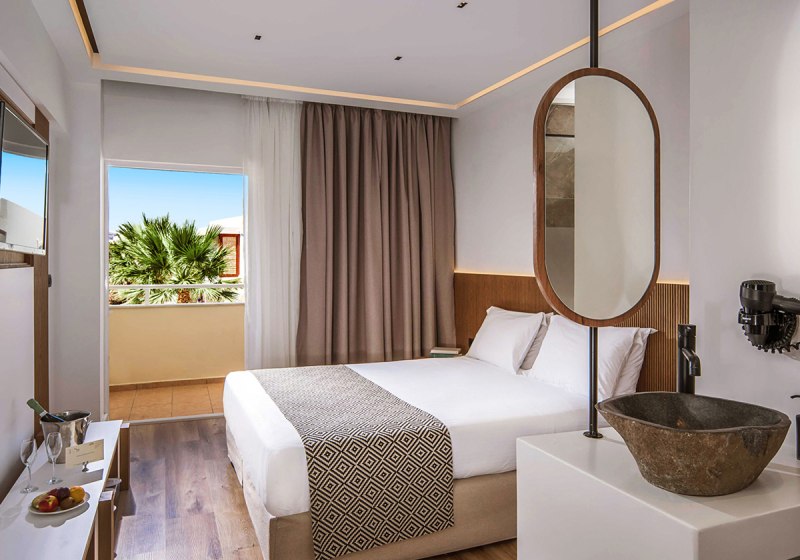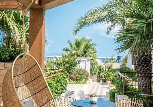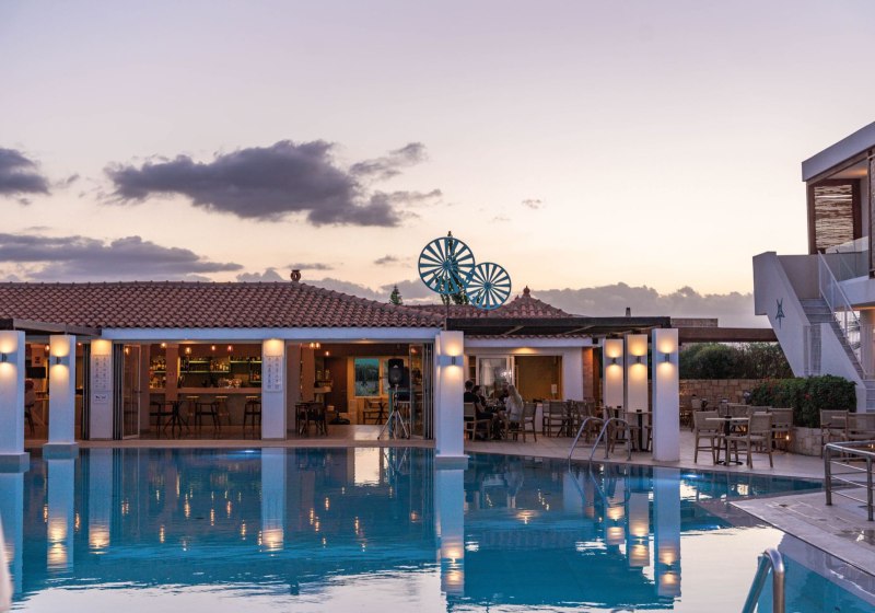 Die Anlage wirkt aufgeräumt und zeitgemäß, mit Gartenflächen und sonnigen Terrassen als verbindenden Orten. Der hauseigene Shuttle erleichtert den Weg zum Sandstrand, während der exklusive Sensus-Bereich für ausgewählte Zimmer mit eigenem Pool und Poolbar ein Plus an Rückzug bietet. Abends sorgen Livemusik und Animation für leichte Unterhaltung, kulinarisch prägen kretische und mediterrane Noten den Aufenthalt.