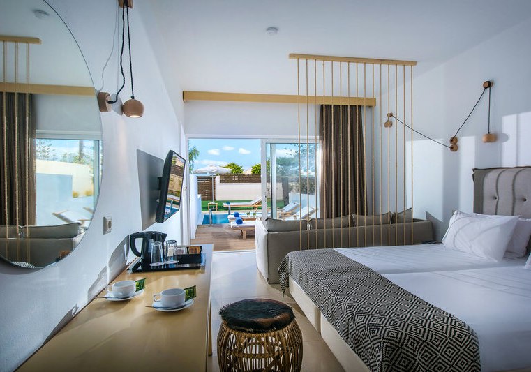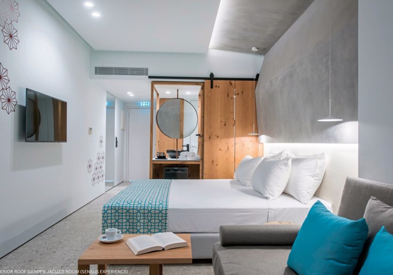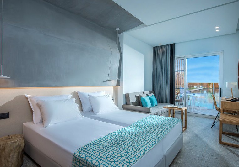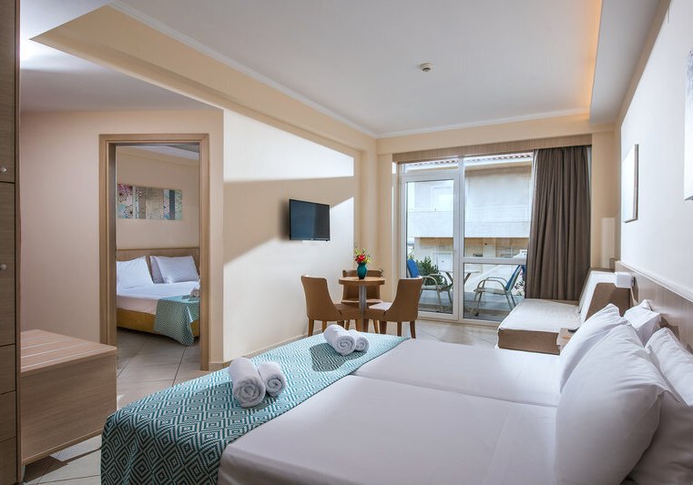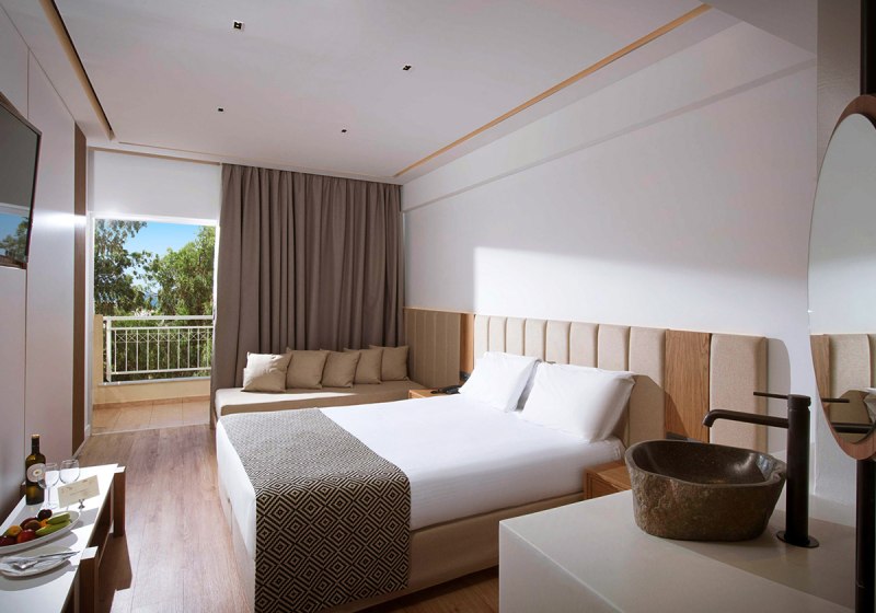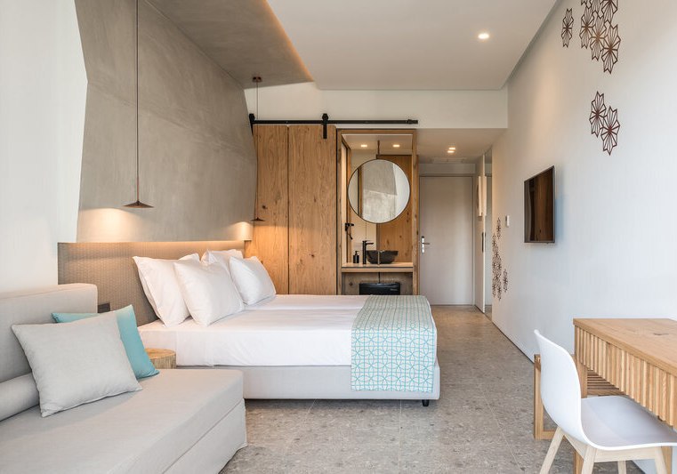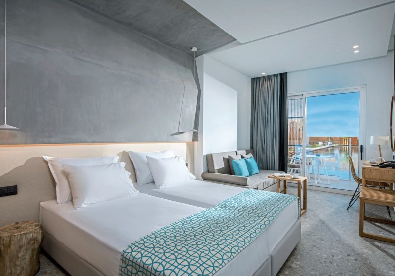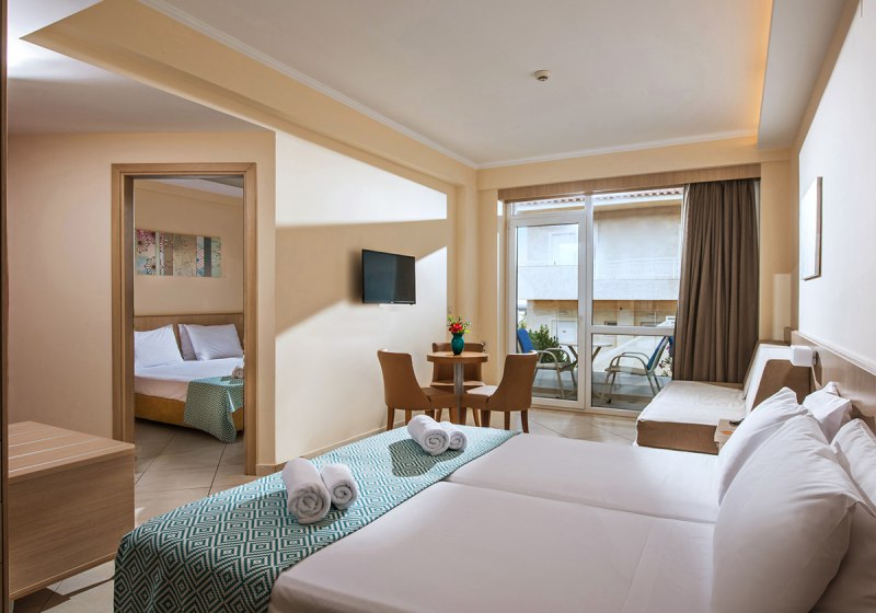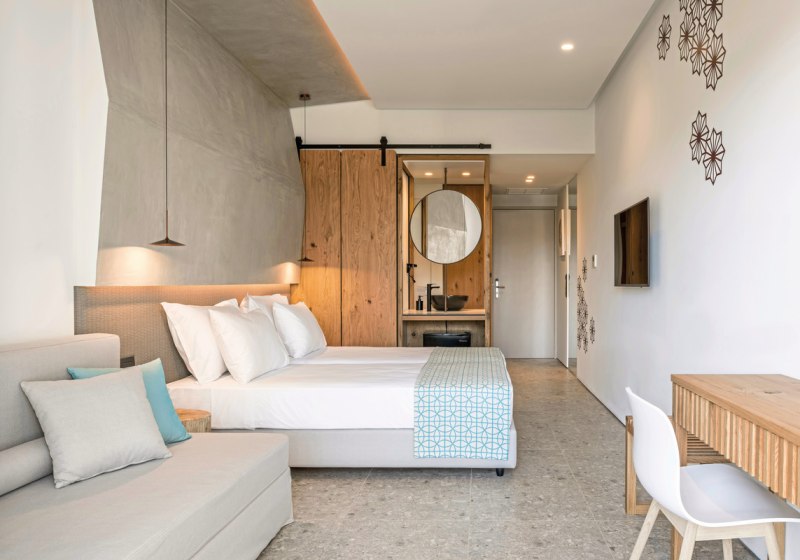 Die Zimmer im Aelius Hotel & Spa verbinden klare Linien mit praxisnahen Details. Familienzimmer bieten ein separates Schlafzimmer, während ausgewählte Einheiten mit privatem Pool für maximale Privatsphäre stehen. Balkon oder Terrasse öffnen den Blick auf Garten- oder Poolbereiche, Verdunkelungsvorhänge und Schallisolation sorgen für ruhige Nächte.