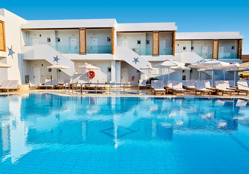 Pauschalreise Hotelkategorie 4 Sterne - Diese Hotelkategorie wird vom Veranstalter oder anderen offiziellen Quellen zur Verfügung gestellt. Sie wird für gewöhnlich von einer Hotelbewertungsorganisation oder einem anderen Dritten festgelegt. Sol Marina Beach Crete