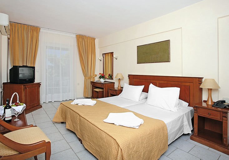 Wählt zwischen Doppel- oder Twin-Betten, Einzelbetten und Familienzimmern mit separatem Schlafzimmer. Je nach Lage blickt Ihr auf Garten, Pool oder das Meer. Nichtraucherzimmer sind ausgewiesen, insgesamt stehen 95 Zimmer in Gebäuden mit bis zu zwei Etagen bereit. Auf Wunsch ergänzen Kinderbetten den familienfreundlichen Zuschnitt.