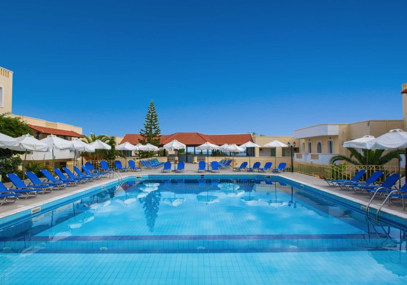 Alexander House empfängt Euch in Agia Pelagia auf Kreta mit einem klaren Fokus auf entspannte Strandtage und unkomplizierte Wohlfühlmomente. Das Haus verteilt sich auf vier Gebäude und wirkt dadurch angenehm überschaubar. In den Gemeinschaftsbereichen trefft Ihr auf eine Atmosphäre, die von mediterranem Licht, Poolleben und kurzen Wegen geprägt ist. Familien schätzen den Kinderpool, den Spielplatz und den Miniclub, während Aktivere den Fitnessraum und Tischtennis nutzen.