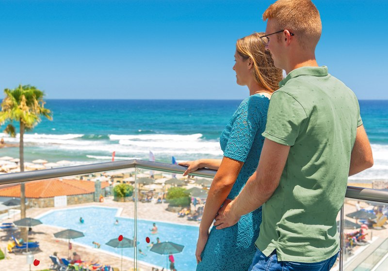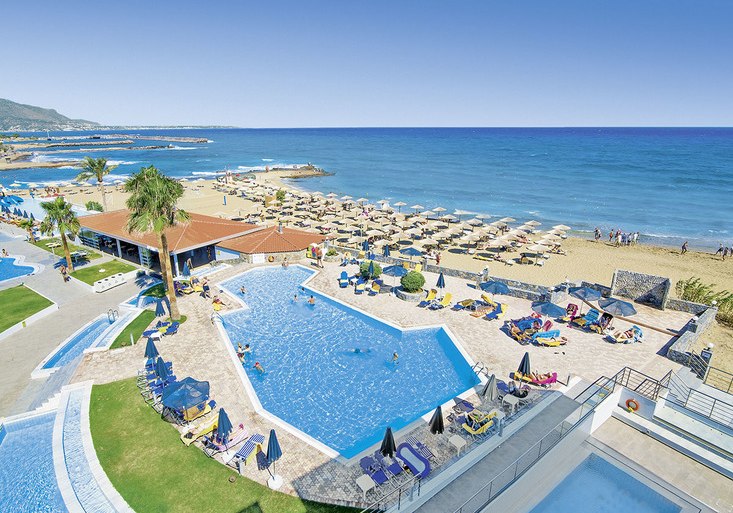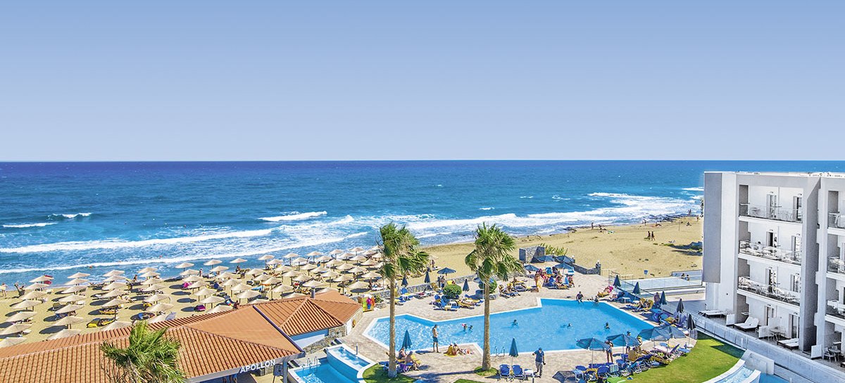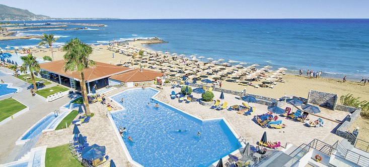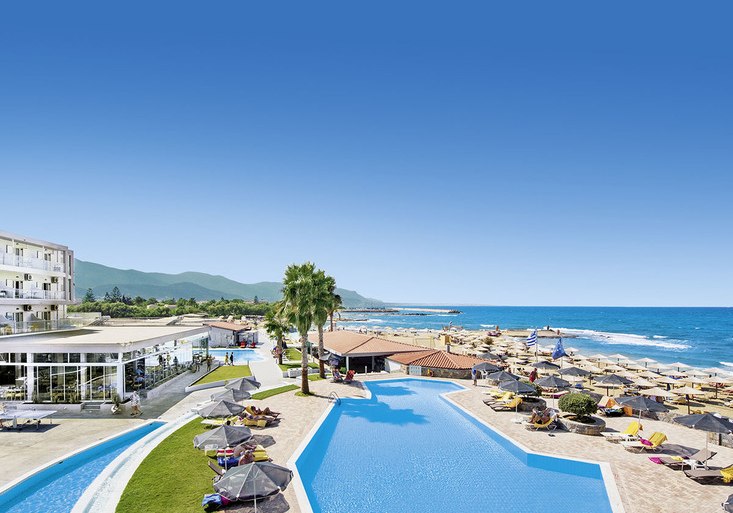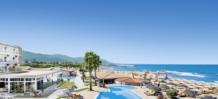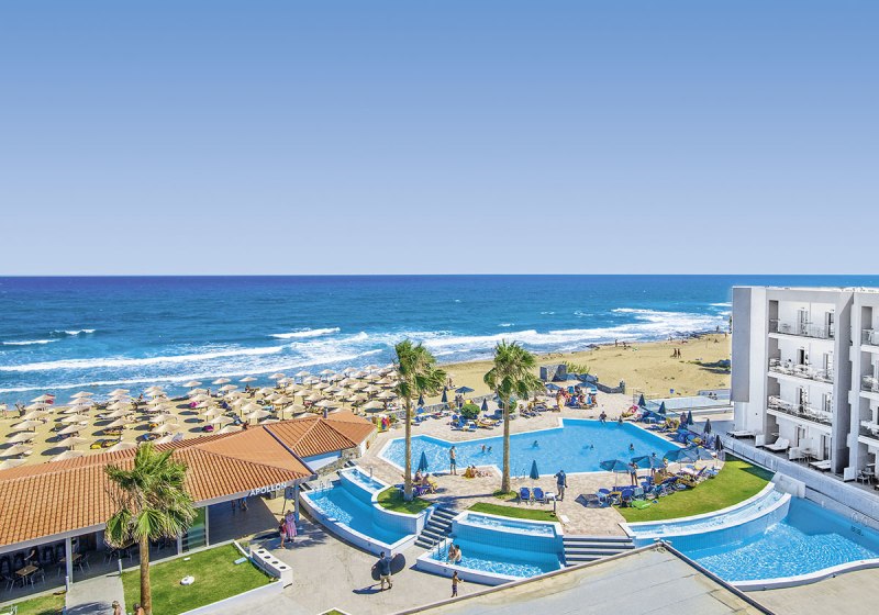 Direkt am Sandstrand von Malia empfängt Euch allsun Hotel Carolina Mare mit klarer Struktur: Haupthaus und mehrere Wohngebäude, 273 Zimmer, viel Platz für ruhige Stunden und kurze Wege zum Meer. Die Atmosphäre wirkt entspannt und aufgeräumt, mit Terrassen und Sitzgruppen, wo Ihr den Blick über Pool und Küste schweifen lasst. Highlight: Direkte Strandlage mit weitläufigen Außenbereichen und Meerblick-Restaurant.