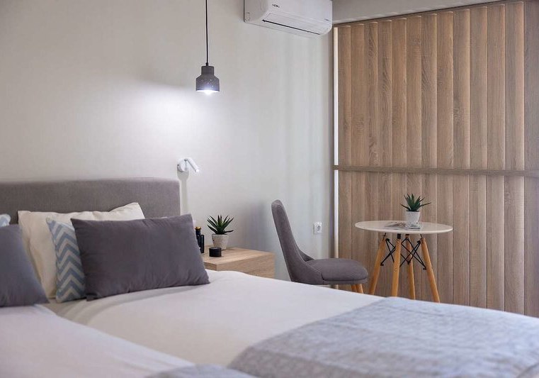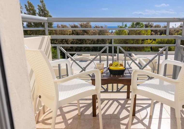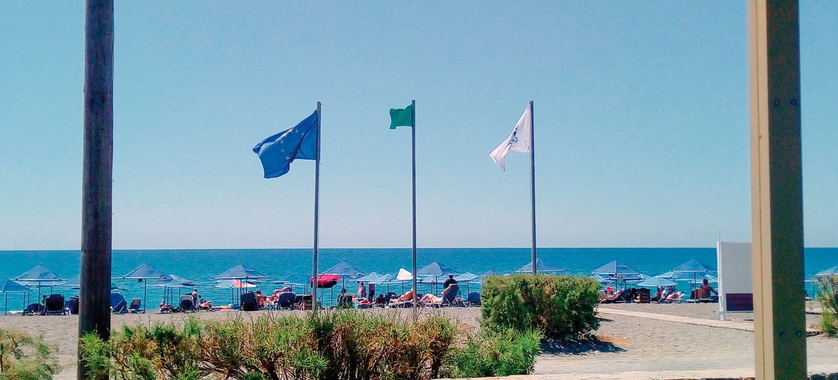 Ihr residiert an der Südküste Kretas, direkt am Long Beach. Die Blaue Flagge und der 5 km lange Sand‑/Kiesabschnitt geben Euren Tagen verlässliche Struktur zwischen Baden, Spazieren und Ausblick. Rund 9 km trennen Euch von Ierapetra, eine Bushaltestelle liegt in der Nähe, der Flughafen Heraklion ist etwa 100 km entfernt.