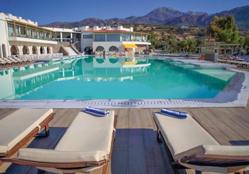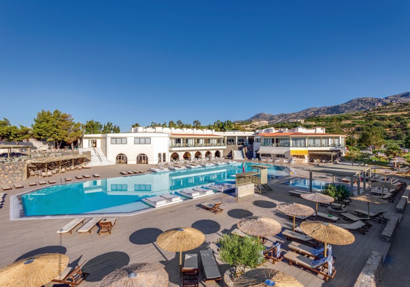 Almyra Resort steht für direkte Strandlage, klare Strukturen und verlässliche Angebote. Zwei Pools, inkludierte Liegen und Schirme am Strand, flexible Gastronomie und ein fokussiertes Spa bilden einen ruhigen Rahmen für Eure Tage im Urlaub.