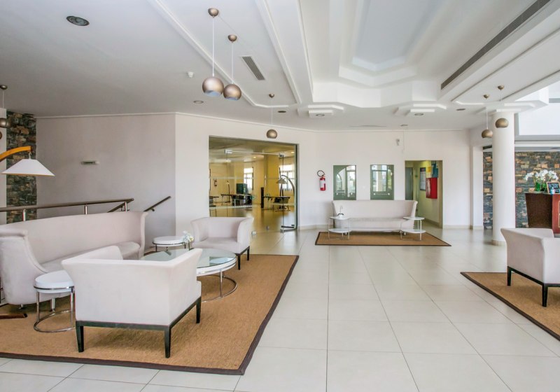 Die Anlage ist funktional organisiert: 24‑h‑Rezeption, Lobby und Lounge, Wi‑Fi in Zimmern sowie im Poolbereich inklusive. Minimarkt, Souvenirshop und Boutique versorgen Euch ohne externe Wege. Parkplätze sind inklusive. Am Wasser erwarten Euch zwei Pools, ein Kinderbecken sowie Badetücher, Liegen und Schirme – am Pool wie am Strand.