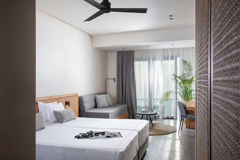 Die 44 Nichtraucherzimmer des Hotels Almyrida Residence sind mit einer Klimaanlage, einem Balkon, einem Badezimmer und einem Fernseher ausgestattet. Zu den weiteren Annehmlichkeiten zählen eine Minibar, ein Safe, ein Kühlschrank sowie ein Internetzugang. Für Gäste mit besonderen Bedürfnissen bietet das Hotel rollstuhlgerechte Zimmer und barrierefreie Badezimmer.
