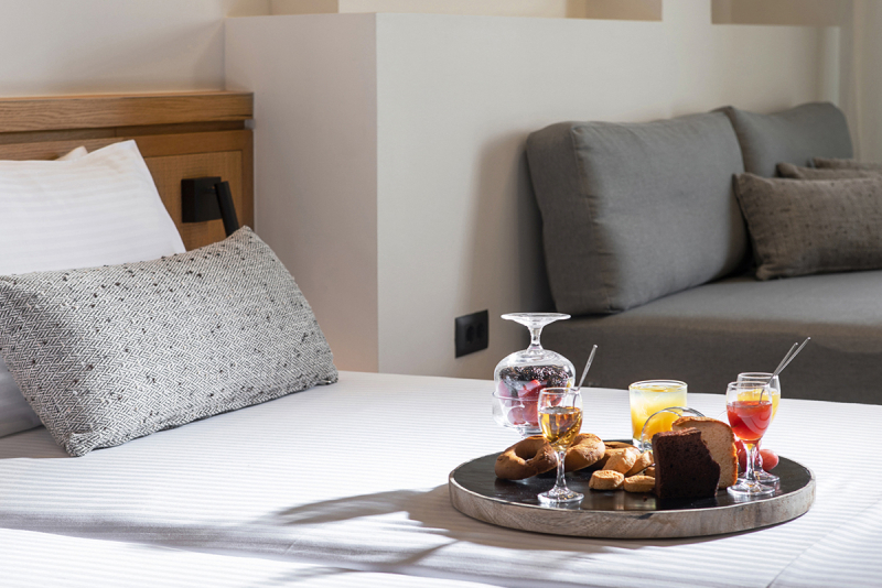 Im Hotel Almyrida Residence können Gäste zwischen verschiedenen Verpflegungsoptionen wählen, darunter Übernachtung mit Frühstück, Halbpension und Vollpension. Die Mahlzeiten werden im hoteleigenen Restaurant serviert und können auch auf der Terrasse genossen werden. Zusätzlich gibt es eine Snackbar und eine Poolbar.Ausstattung