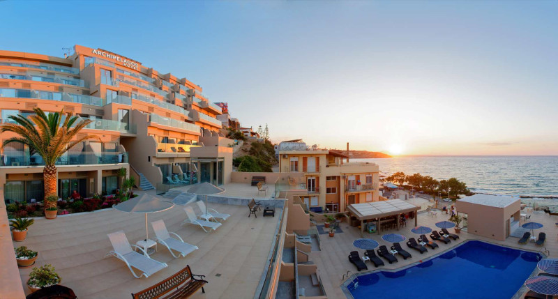 Archipelagos Hotel vereint Strandnähe und Stadtnähe in klarer Form: rund 50 Meter bis zum Meer, etwa 800 Meter ins Zentrum. Mit Pool, Sonnenterrasse, Bar und Frühstück bleibt Ihr flexibel zwischen Badezeit und kurzen Wegen in die Altstadt von Rethymnon.