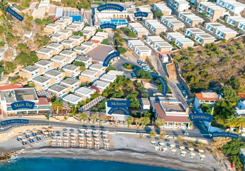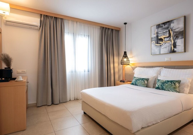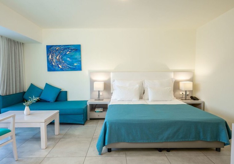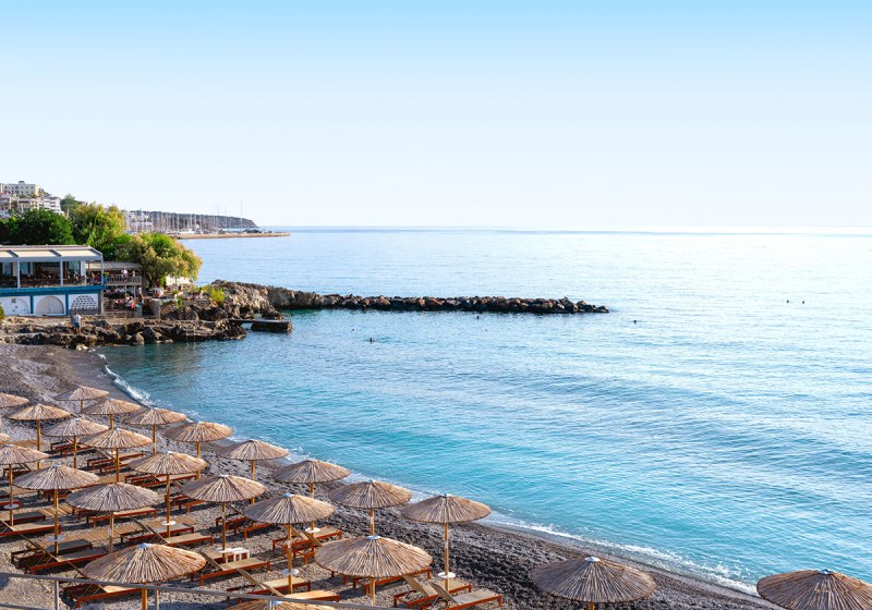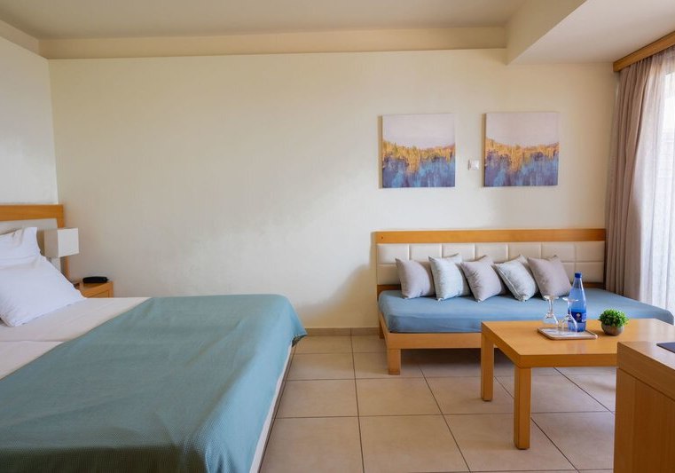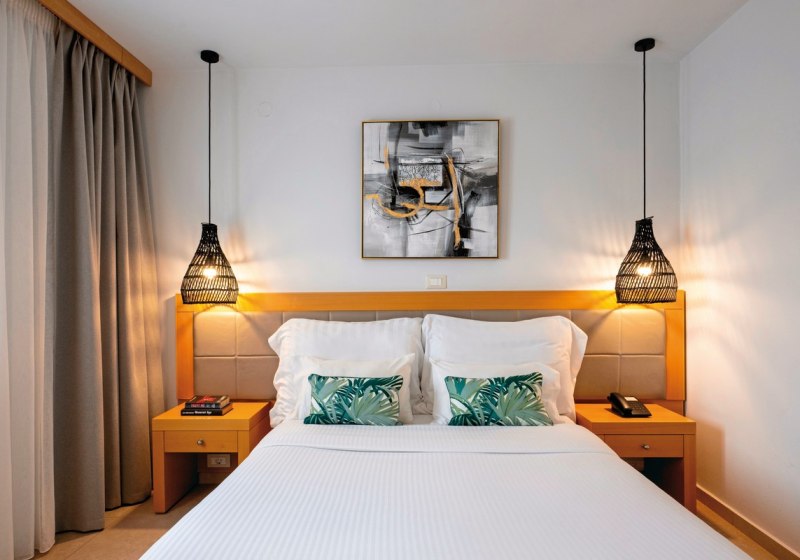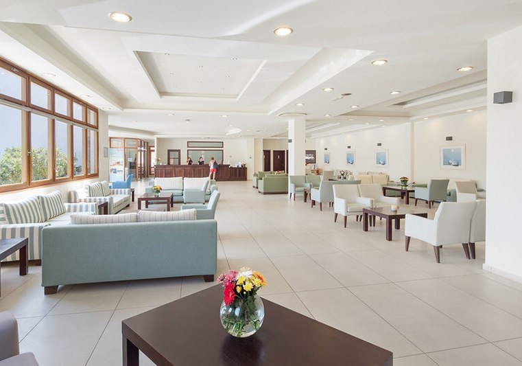 Im Ariadne Beach erwartet Euch ein Erwachsenenhotel ab 16 Jahren mit ruhiger, klar strukturierter Atmosphäre. Zwei Süßwasserpools, üppige Gartenbereiche und eine sonnige Terrasse prägen das Bild. Von der Hanglage blickt Ihr Richtung Küste und erreicht den Sandstrand nach einem kurzen Weg. Das Haus wirkt aufgeräumt, mit kompakten Wegen zwischen Lobby, Poolbereichen und Restaurant.