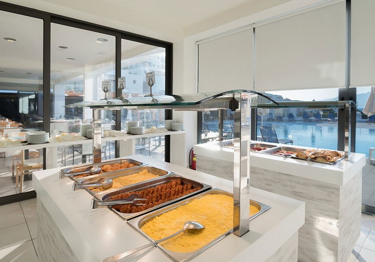 Im Buffetrestaurant erwartet Euch eine Mischung aus landestypischer und internationaler Küche. Je nach gebuchter Leistung wählt Ihr zwischen Frühstück, Halbpension, All-Inclusive oder einzelnen Mahlzeiten. Live-Kochen sorgt zu ausgewählten Zeiten für frische Zubereitung an den Stationen. Vegetarische Optionen sowie glutenfreie Speisen sind verfügbar. Highlight: Klare Auswahl mit landestypischen Akzenten.