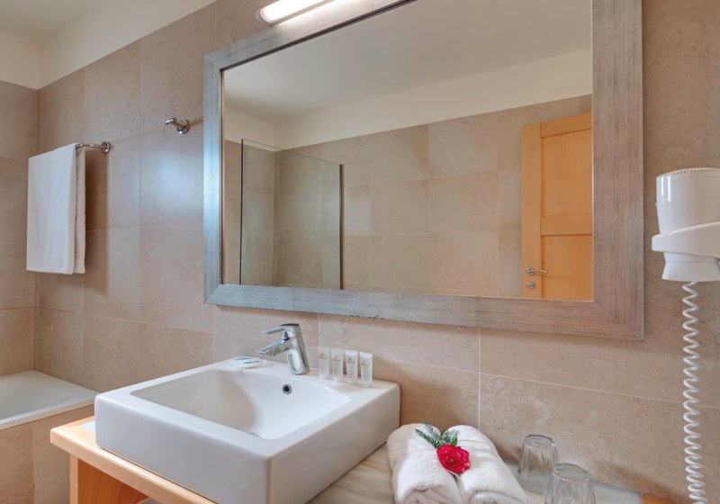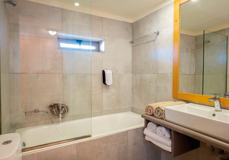 Zur Ausstattung zählen Bad mit Dusche oder Badewanne, WC und Haartrockner. Eine individuell regulierbare Klimaanlage, Sat-TV mit Flachbildschirm und ein Mini-Kühlschrank sind vorhanden; ein Safe ist gegen Gebühr verfügbar. Die Terrassen und Balkone erweitern den Wohnbereich spürbar in den Abend. Highlight: Funktionale Ausstattung mit Klimaanlage und möbliertem Aussenbereich.
