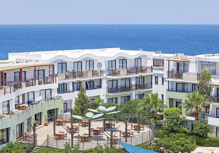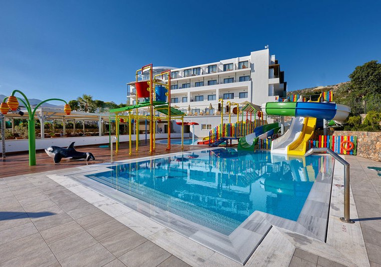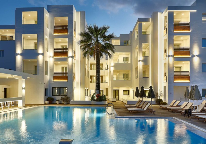 Im Arminda Hotel & Spa erlebt Ihr ein lebendig strukturiertes Strandresort mit klaren Linien und kurzen Wegen. Vier Meerwasserpools, ein Wasserpark mit Rutschen und ruhige Terrassenflächen schaffen Abwechslung zwischen Aktivität und Auszeit. Familien fühlen sich dank schattiertem Spielplatz und separaten Kinderbecken ebenso wohl wie Paare, die entspannte Stunden an der Sandbucht suchen.
