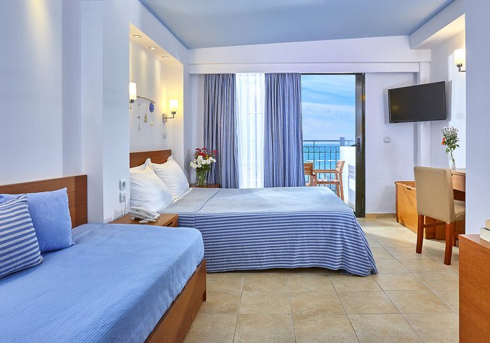 Die Anlage umfasst 200 Zimmer in Haupt- und Nebengebäude mit Lift sowie durchdachten Servicepunkten von der 24-Stunden-Rezeption bis zur Sat-TV-Ecke. Kulinarisch erwarten Euch Restaurant mit Terrasse, Snack-Varianten, Bar und Kafeneio. Highlight: Renovierung 2025 bringt einen frischen Auftritt in vielen Bereichen. Kleine Haustiere sind auf Anfrage erlaubt.