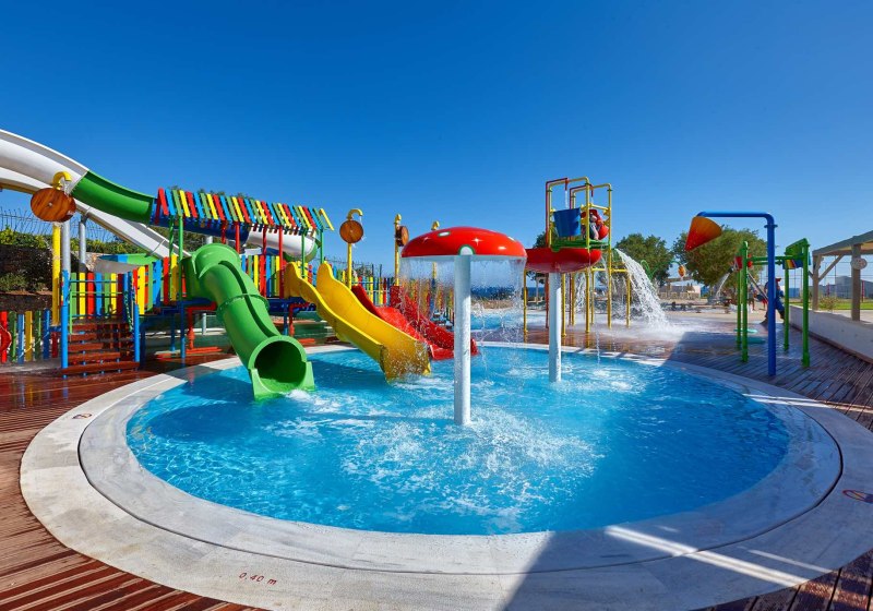 - Rutschenpark: Wasserpark mit Rutschen ergänzt die vier Meerwasserpools.