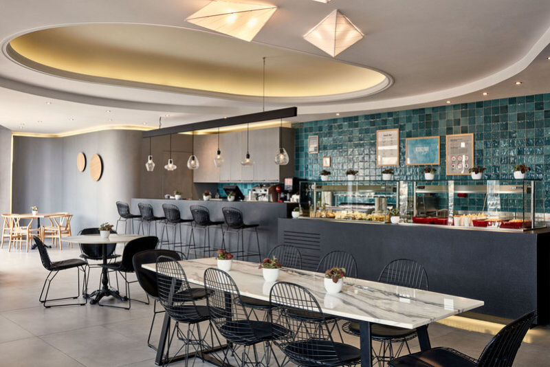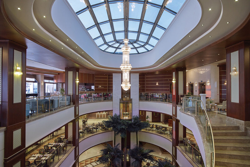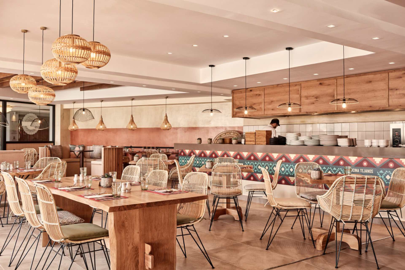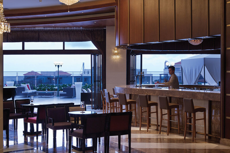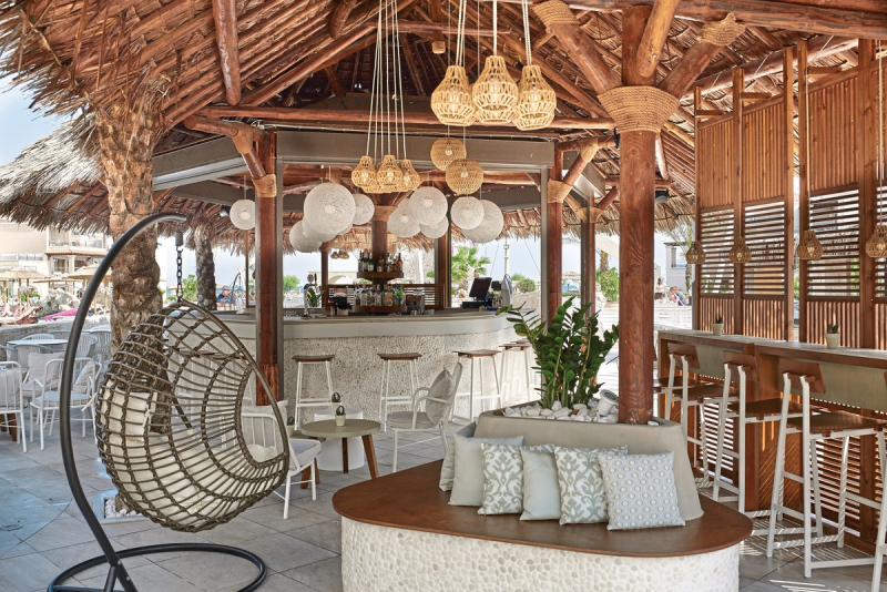 Das Atlantica Caldera Palace verfügt über insgesamt 8 Restaurants, die eine Vielzahl von Küchen anbieten, darunter mexikanische, asiatische, griechische, mediterrane, internationale und japanische Küche. Die Restaurants werden durch fünf Bars ergänzt, darunter eine Loungebar und Poolbars.Ausstattung