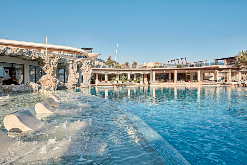 Für Wellnessliebhaber bietet das Atlantica Caldera Palace ein Spa- & Wellnessbereich gegen Gebühr an, das ein Hallenbad, Schönheitsbehandlungen, ein Hamam, Massagen und eine Sauna umfasst. Das Atlantica Caldera Palace bietet eine Vielzahl von Sportaktivitäten an, darunter Aerobic, Wasseraerobic, Bogenschießen, Basketball, Beach-Volleyball, Fitnessstudio, Tennis und Tischtennis. Tauchen ist ebenfalls möglich.