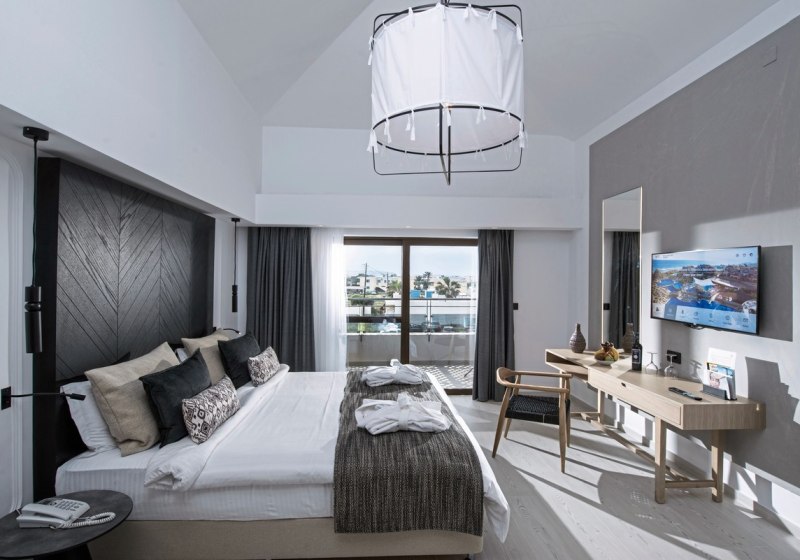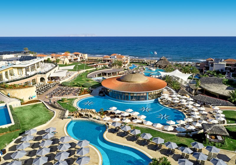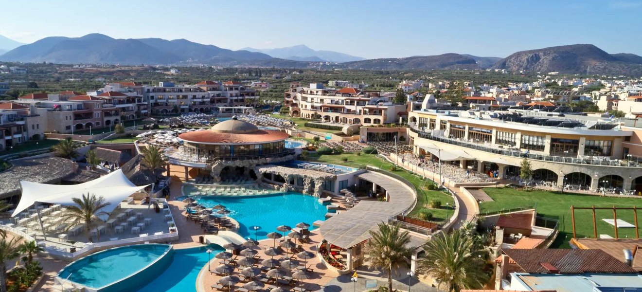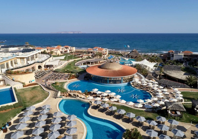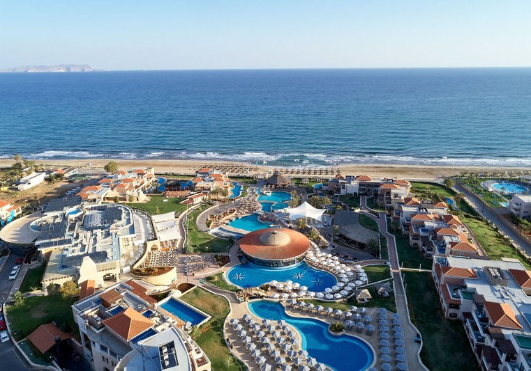 Im Atlantica Caldera Palace trefft Ihr auf ein Resort, das Euch mit direkter Strandlage in Analipsi und vier Außenpools sofort ankommen lässt. Die weitläufigen Bereiche wirken lebendig, ohne zu überladen zu sein. Familien fühlen sich dank Miniclub, Kinderpool und Wasserpark gut aufgehoben, während Paare die ruhigen Ecken und Abende mit Livemusik schätzen.