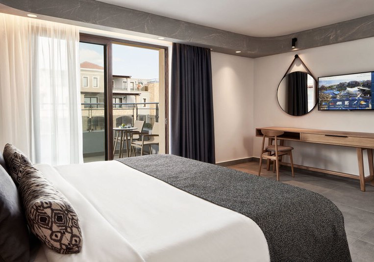 Ihr wohnt direkt am Sand-Kiesstrand von Analipsi – der Weg vom Zimmer zum Meer ist kurz und geradlinig. Bis Hersonissos sind es etwa 4 Kilometer, sodass Ihr Ausflüge und Stadtflair schnell einplant. Eine Bushaltestelle liegt in rund 500 Metern Entfernung und erleichtert Eure spontane Planung.
