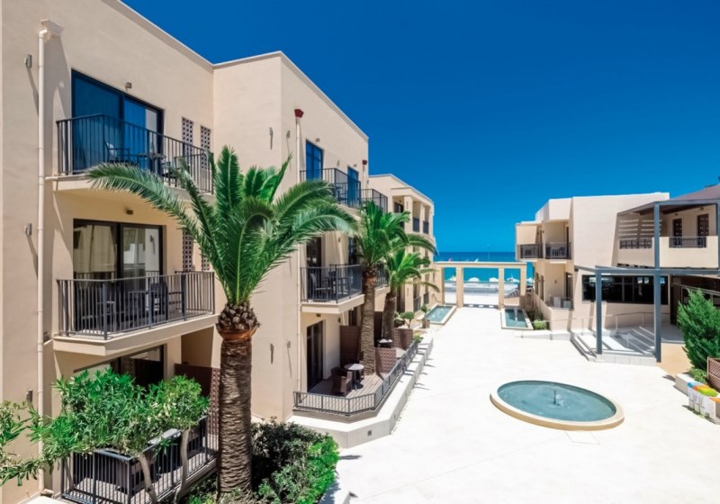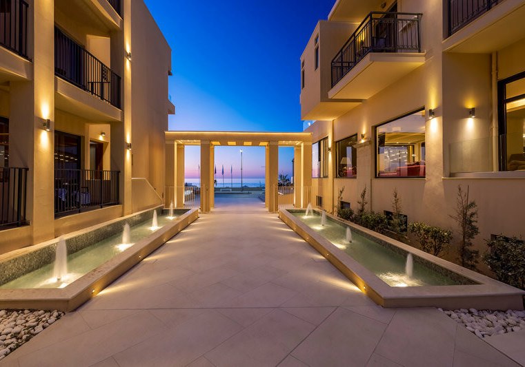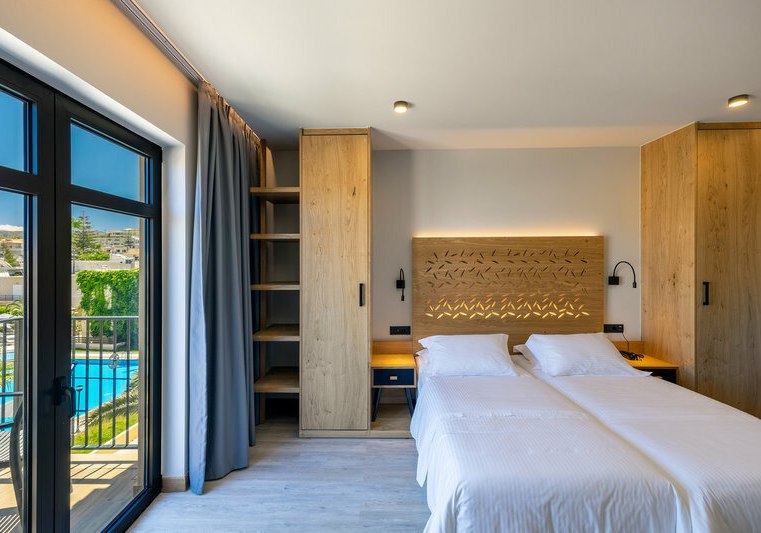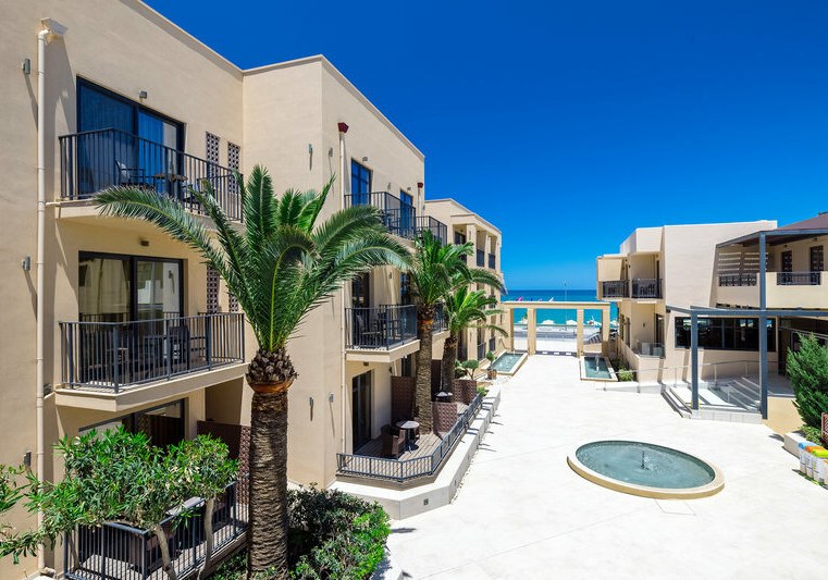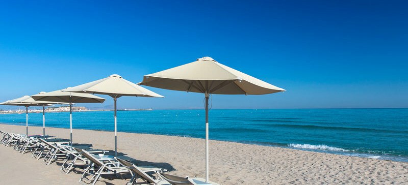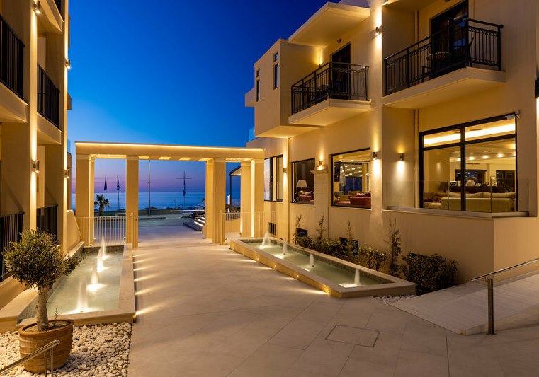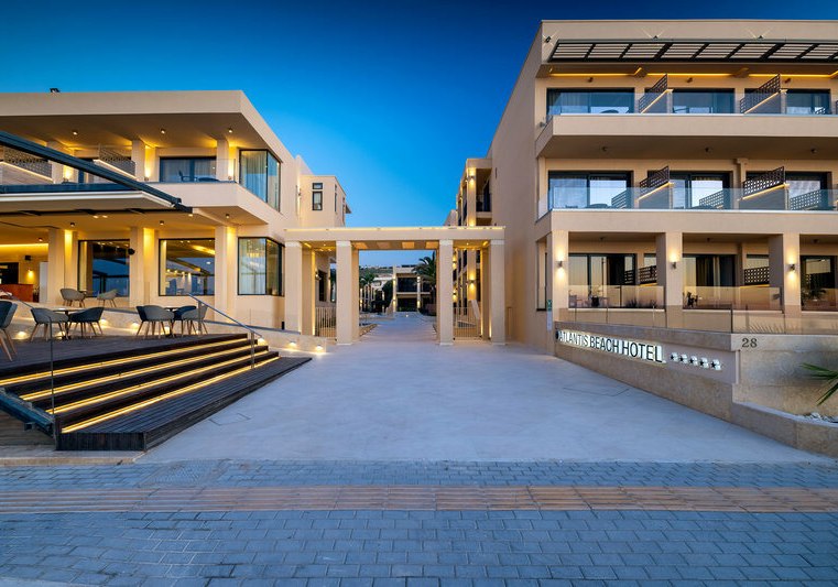 Für die An- und Abreise bietet die Insel gute Anbindung: Der Flughafen Chania liegt etwa 67 Kilometer entfernt, Heraklion etwa 77 Kilometer. Damit bleibt Ihr flexibel, egal welche Route Ihr wählt. Die offizielle Kennzeichnung der Strandnähe liefert eine klare Orientierung und unterstreicht den Charakter eines Badehotels mit urbanem Anschluss.