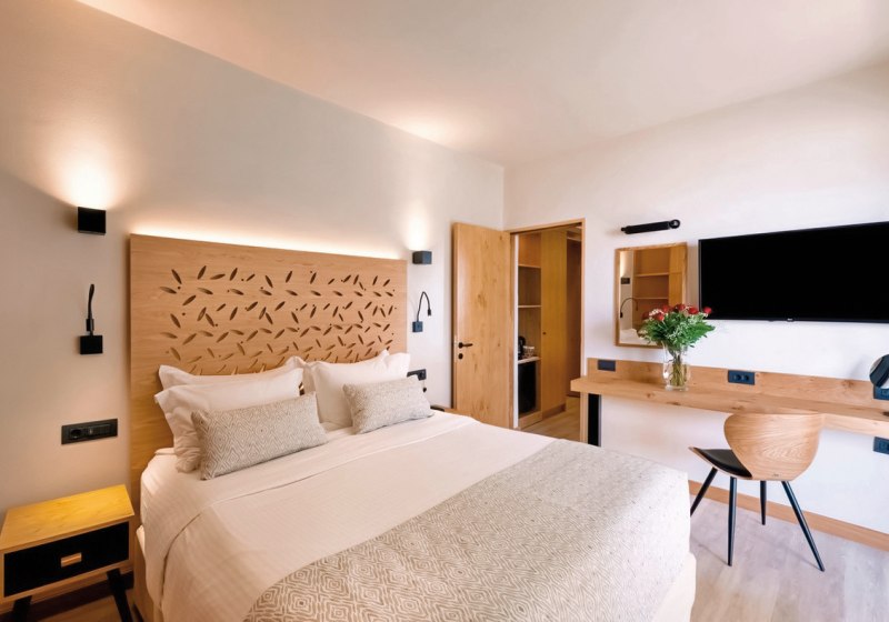 Balkon oder Terrasse öffnen sich zu Garten-, Pool- oder Meerblick. Einige Zimmer verfügen über ein Schlafsofa. Familienzimmer bieten einen durch Schiebetür getrennten Wohn-/Schlafbereich – hilfreich, wenn Ihr den Abend versetzt ausklingen lasst. Doppelbett oder zwei Einzelbetten passen sich Eurer Reiseform an; Telefon und tägliche Reinigung sorgen für verlässlichen Komfort.