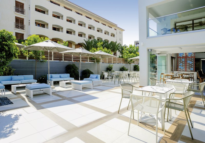 Im Atrium Ambiance Hotel wohnt Ihr in einem Adults-only-Haus ab 14 Jahren, ruhig organisiert und klar strukturiert. 130 Zimmer, aufgeräumte Architektur und ein gepflegter Süßwasserpool prägen den Aufenthalt. WLAN ist inklusive, am Pool warten Liegen und Sonnenschirme, Badetücher erhaltet Ihr gegen Kaution.
