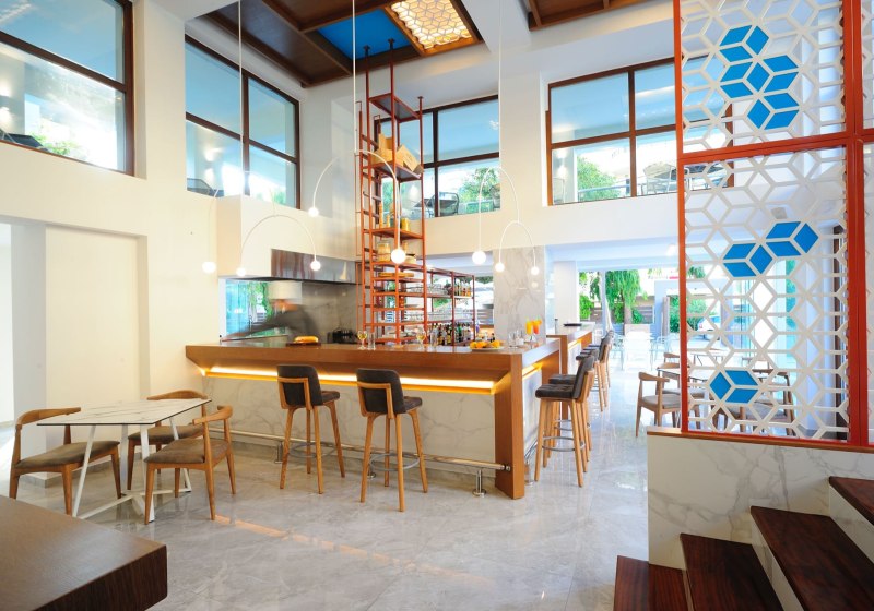 Ihr startet auf der Außenterrasse ins Frühstück, wählt mittags und abends vom Buffet und wechselt zwischendurch an Hauptbar oder Cafeteria. Vegetarische und glutenfreie Speisen sind verfügbar – ideal für eine klare, planbare Auswahl ohne Umwege. Die Terrasse verbindet Innenraum und Poolseite angenehm direkt.