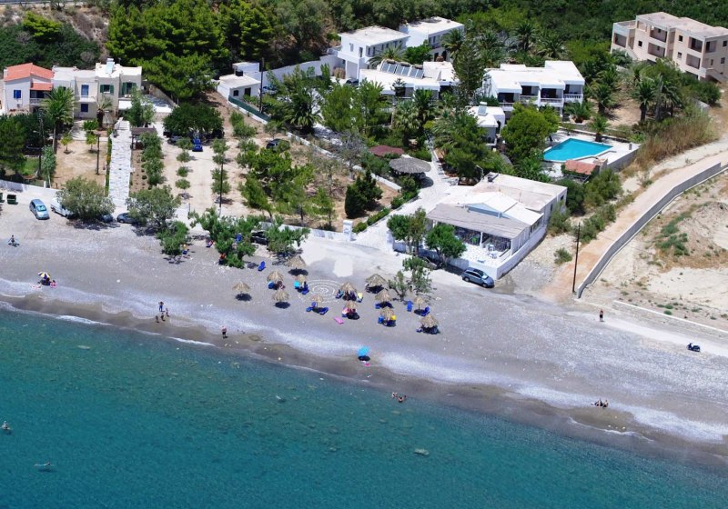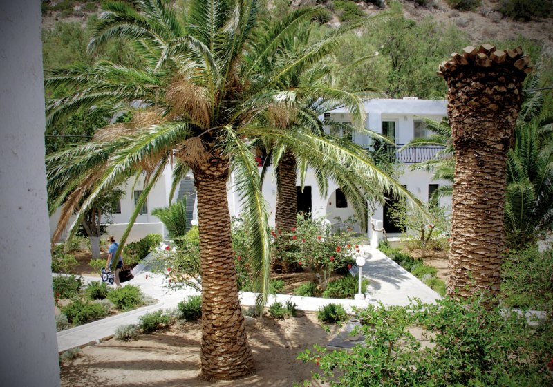 Im Avra Palm in Koutsounari wohnt Ihr direkt am Sandstrand, mit kurzem Weg ins Wasser und Blick auf Palmen und Meer. Die Anlage wirkt überschaubar und entspannt, mit Pool, gepflegtem Palmengarten und eigener Strandzone mit inkludierten Liegen und Schirmen. Hier gestaltet Ihr den Tag frei zwischen Strand, Pool und der hauseigenen Taverne.