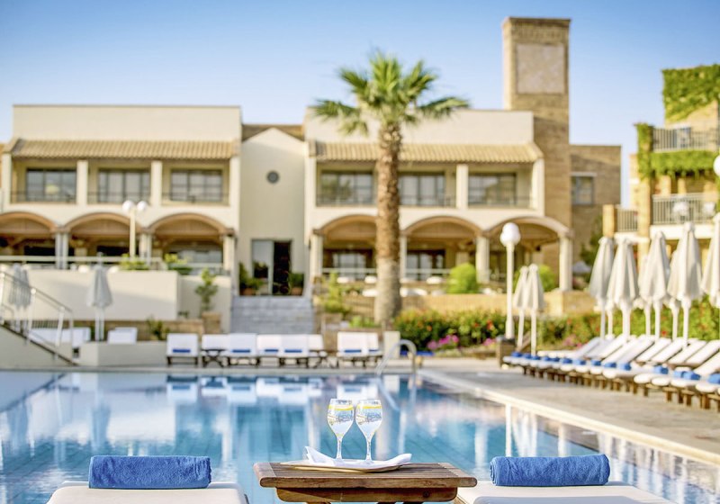 Vier Bars verteilen sich sinnvoll über die Anlage: Lobby-/Hauptbar, Weinbar, Poolbar und Strandbar. Vegetarische und glutenfreie Speisen sowie Kindermenüs ergänzen das Angebot. Snacks schließen Lücken zwischen den Mahlzeiten. Highlight: Zwei Themenrestaurants mit klarer Profilierung – Fisch und griechische Küche.