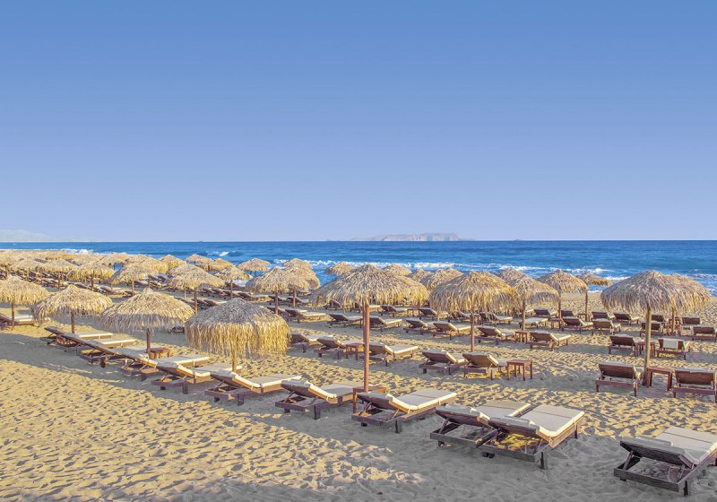 Das Bella Beach Hotel liegt an der Nordküste Kretas direkt am Strand – ein Standortvorteil, der Euren Tag klar strukturiert: Frühstück, wenige Schritte bis zum Meer, zurück an den Pool oder an die Strandbar. Liegen und Sonnenschirme sind am Pool wie am Strand inkludiert, was Euren Rhythmus angenehm vereinfacht.