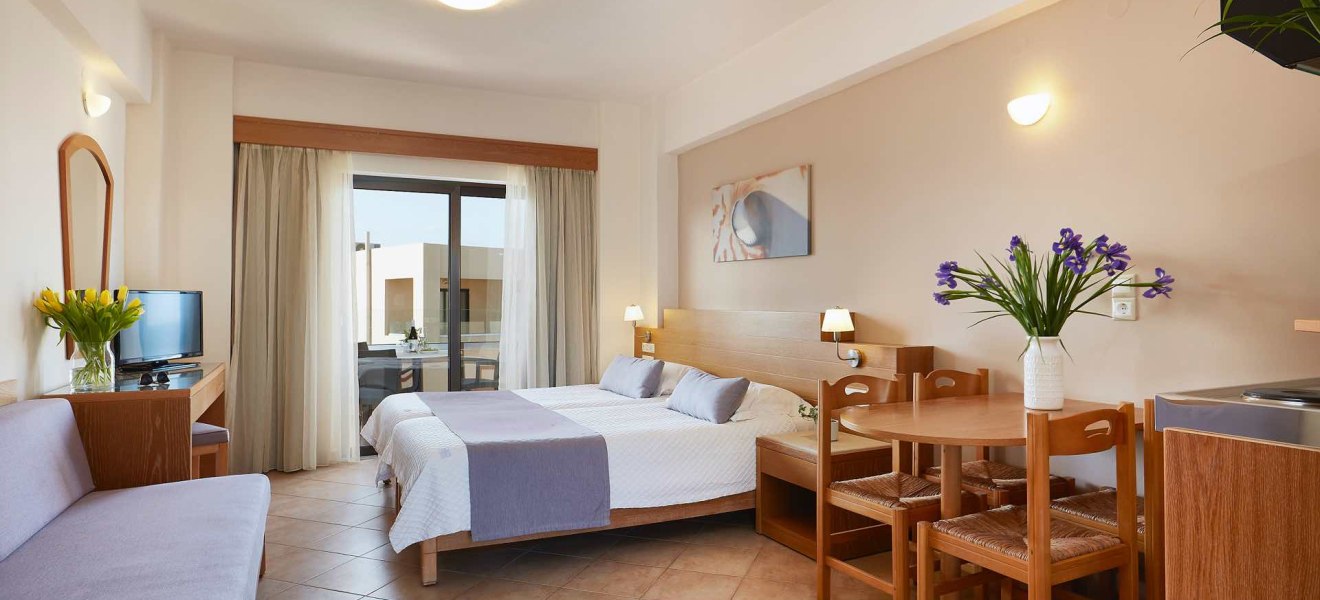 - Direktlage Strand: Ihr wohnt am Strand von Platanias mit kurzen Wegen ins Wasser.