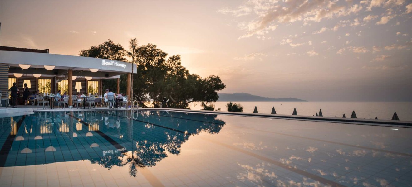 Blue Dome Sea View Hotel bündelt Strandlage, funktionale Apartments mit Meerblick und serviceklare Infrastruktur zu einem fokussierten Aufenthalt ohne Umwege. Zwei Pools, Kinderbecken und kurze Wege zu Restaurants, Einkauf und ÖPNV halten den Tagesablauf leicht planbar.