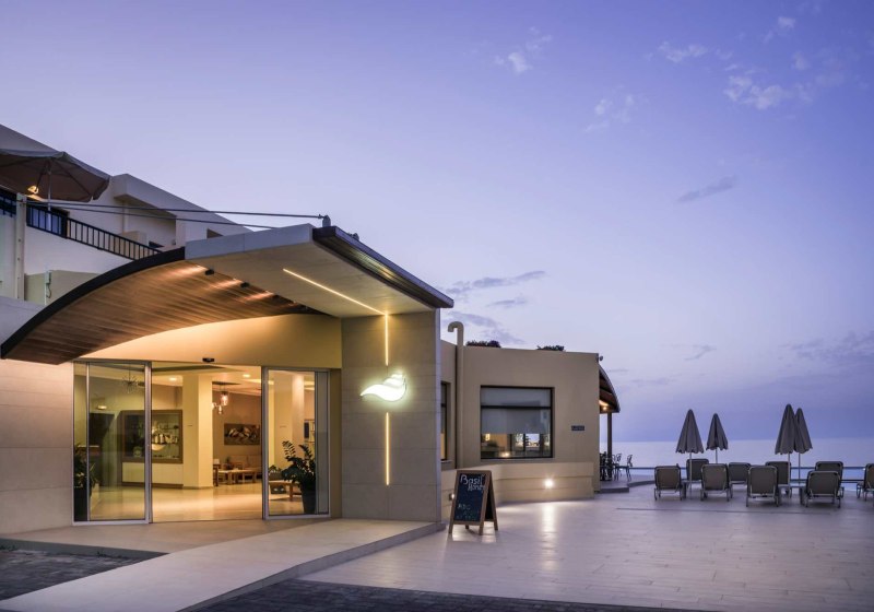 Willkommen im Blue Dome Sea View Hotel, einem überschaubaren Apartmenthotel mit 39 Wohneinheiten direkt am Strand von Platanias. Die Atmosphäre ist angenehm ungezwungen: Ihr nehmt auf der Terrasse Platz, hört das Meer und habt die Aegäis stets im Blick. Zwei Außenpools und ein separates Kinderbecken strukturieren den Tag zwischen Schwimmen, Lesen und kurzen Wegen ans Wasser.