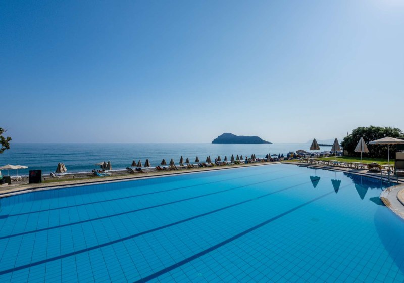 Die Lage spricht Klartext: direkt am Strand von Platanias, mit Sonnenliegen und Schirmen am Pool und am Meer. Zum internationalen Flughafen Chania sind es etwa 18 Kilometer. Rund um das Hotel erreicht Ihr Stadtzentrum, Restaurants, Bars, Einkaufsmöglichkeiten, ÖPNV und Busbahnhof in rund 300 Metern – kurze Wege, die Euren Tagesablauf planbar und flexibel halten.