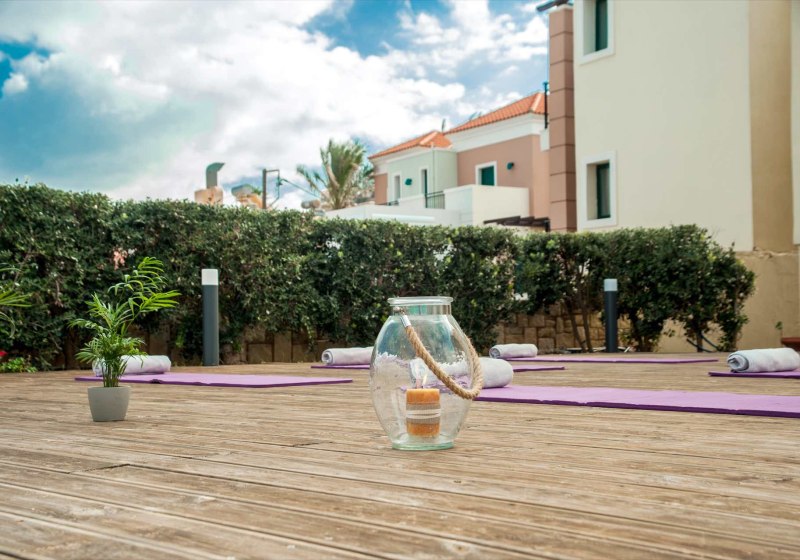 Aktive Erholung beginnt hier schlicht und effektiv: Ein Fitnessraum steht bereit, Yoga und Pilates geben dem Tag ruhige Struktur. Das Angebot setzt auf Bewegung und Regeneration ohne Schnörkel – genau richtig nach Strand, Pool und Spaziergängen durch Platanias.