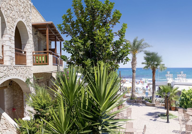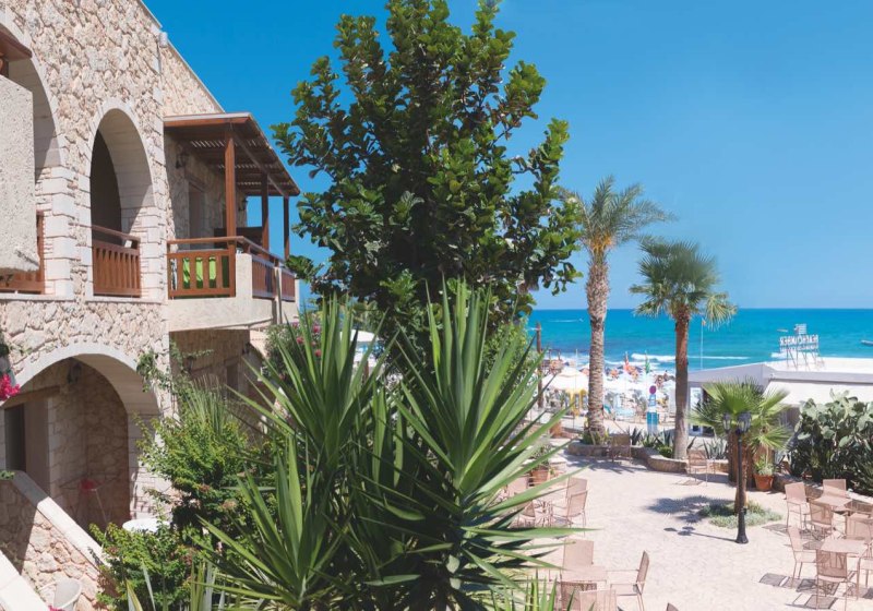 - Direkt am Meer: Nur Küstenstraße trennt Anlagenbereich und Strand von Stalis.