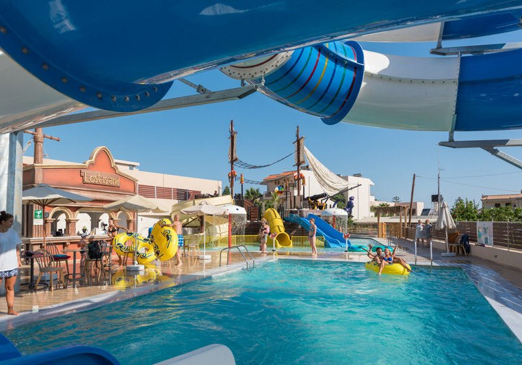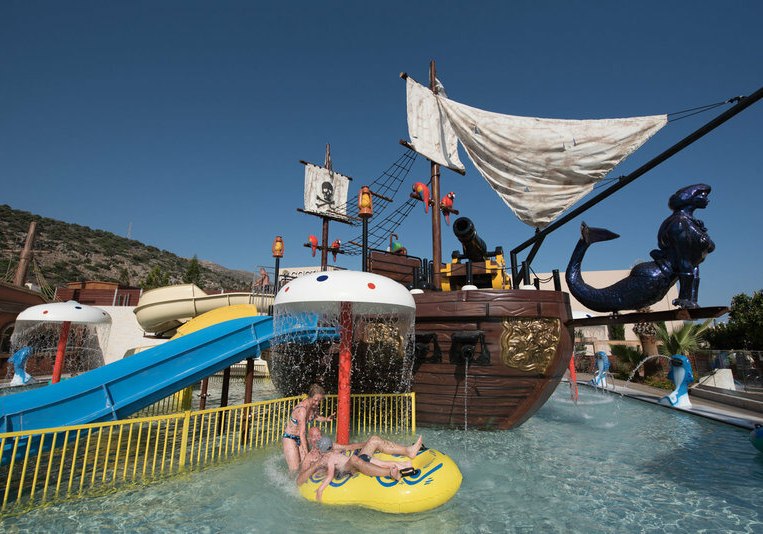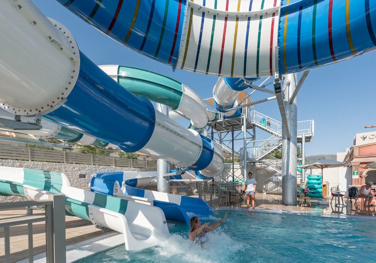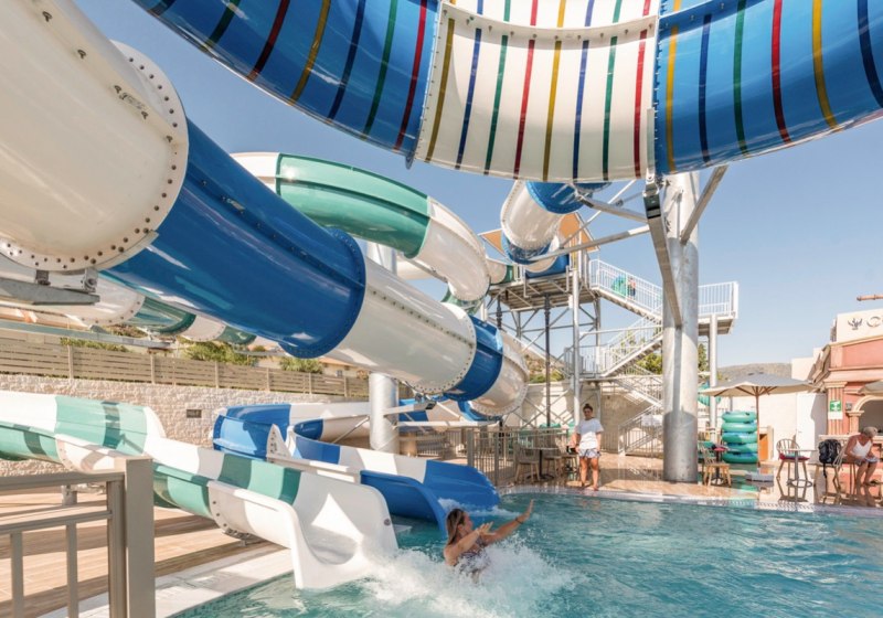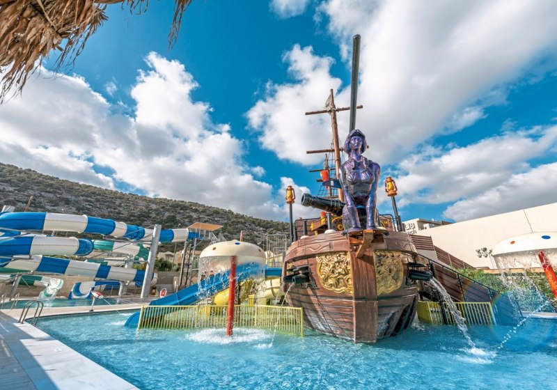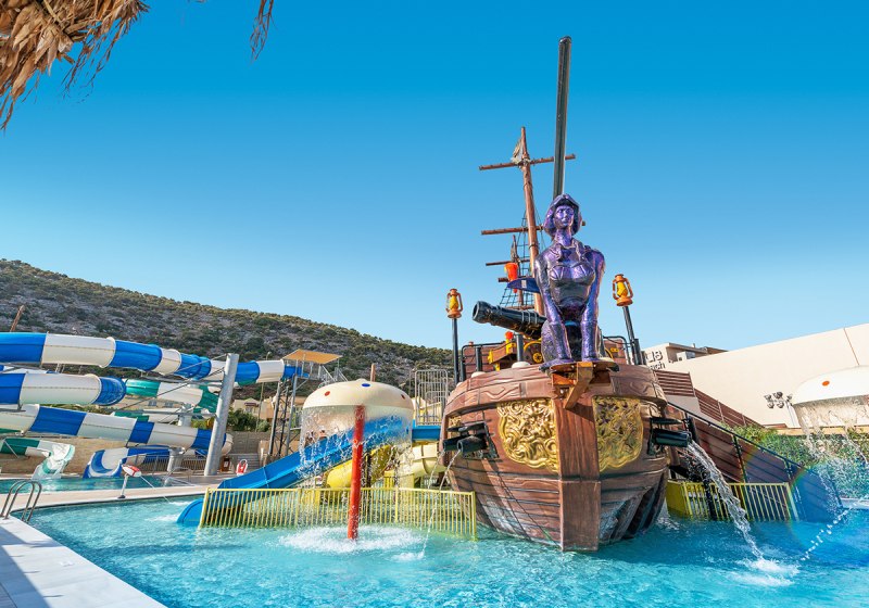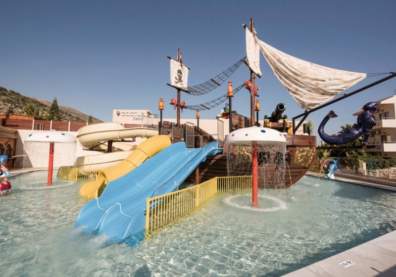 - Wasserpark: Zwei große Rutschen und Piratenschiff sorgen für Tempo.