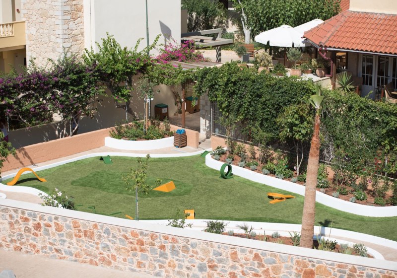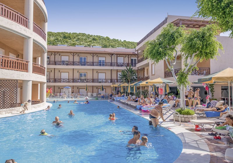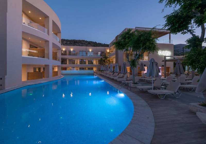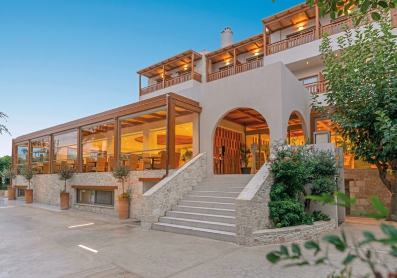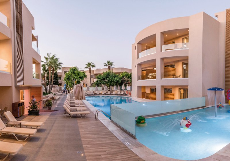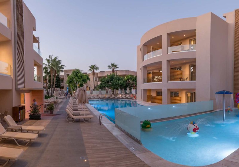 Tagsüber wechselt Ihr mühelos zwischen Meer, Pool und Snackbars. Die 24-Stunden-Rezeption, flächendeckendes Wi‑Fi und kurze Wege zu Bars, Restaurants und Minimarkt halten den Aufenthalt unkompliziert. Wer Abwechslung sucht, nutzt das Animationsprogramm oder entspannt am ruhigeren Becken, während Kinder im separaten Kinderpool planschen. Das Arrangement aus griechischem und italienischem À-la-carte, klimatisiertem Hauptrestaurant und Strandbar gibt Eurem Tagesrhythmus Struktur – von früh bis spät, drinnen wie draußen.
