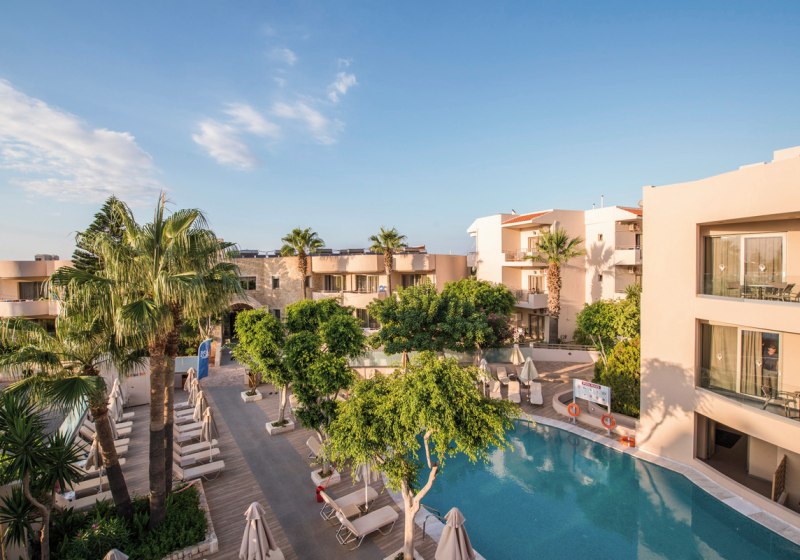 Ihr urlaubt in Stalis auf Kreta, nur durch die Küstenstraße vom Strand getrennt – der direkte Bezug zum Meer prägt jeden Tag. Der Flughafen Heraklion liegt etwa 35 Kilometer entfernt, was eine angenehme Anreise ermöglicht. Rund um die Anlage wechselt Ihr zwischen Strandmomenten und kurzen Wegen zurück zu Pools, Bars und dem Hauptrestaurant. Die Strandbar bringt Euch Erfrischung nahe am Wasser, ohne lange Wege. Wer die Insel erkunden möchte, profitiert von der Lage an der Küstenachse, die Bewegung zwischen den Orten vereinfacht. Golf liegt in erreichbarer Distanz, und die Umgebung bietet maritimes Flair, das Ihr vom ersten Spaziergang an spürt.