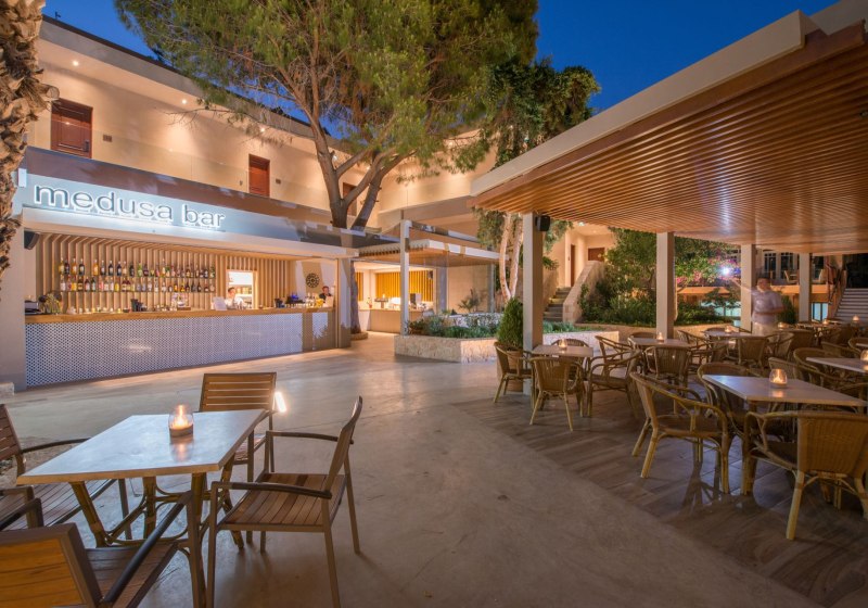 Ihr wählt zwischen einem klimatisierten Hauptrestaurant und zwei À‑la‑carte‑Optionen: griechische Küche und italienische Spezialitäten bringen Abwechslung in Eure kulinarischen Stunden. Dazu kommen Bars, eine Strandbar sowie Pool‑ und Snackbars, die Euch nahe an Wasser und Strand versorgen. Ein Minimarkt deckt kleine Besorgungen unkompliziert ab.