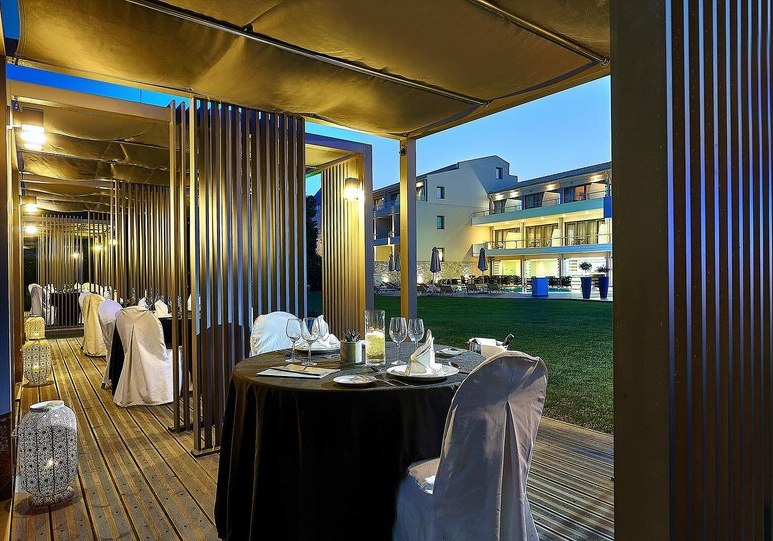 Als Designhotel mit 48 Zimmern und Suiten wirkt das Haus angenehm überschaubar. Die Architektur ist modern, die Atmosphäre unaufgeregt. Die Wege bleiben kurz: Vom Frühstück in den Poolbereich, später ein Gang ins Spa, abends À-la-carte oder Buffet. Wer mag, schlendert in wenigen Minuten ins Zentrum von Sissi oder weiter zum nahen Strand. Haustiere sind nicht gestattet, der Fokus liegt klar auf Euch.